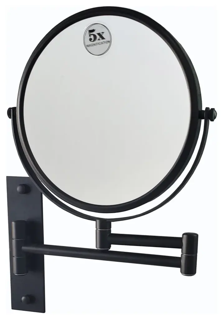 Modern extending two sides magnifying mirror. Very comfortable to use during makeup in bathroom.Made of brass polished chrome.8" mirror screen and features a smooth 360-degree swivel design. 1X and 5X options to check every detail of your makeup are in place.Also available in Matte black finish.13" stretched, 1.5 " folded.Very decorative and useful.Designed and manufactured in Spain