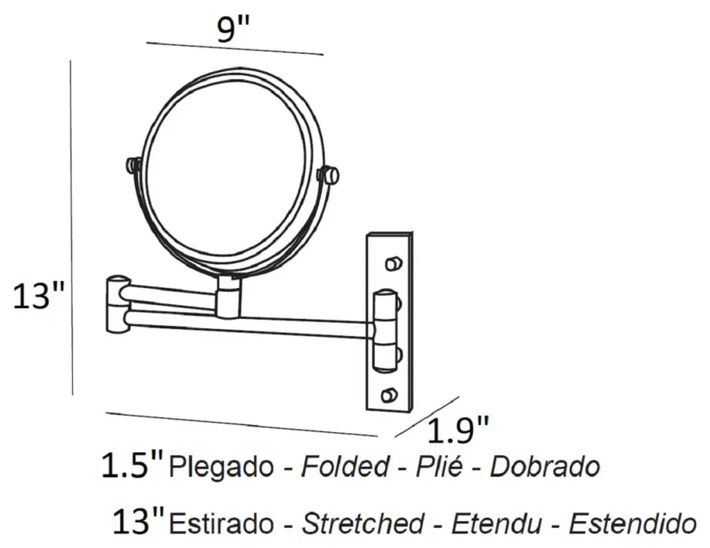 Modern extending two sides magnifying mirror. Very comfortable to use during makeup in bathroom.Made of brass polished chrome.8" mirror screen and features a smooth 360-degree swivel design. 1X and 5X options to check every detail of your makeup are in place.Also available in Matte black finish.13" stretched, 1.5 " folded.Very decorative and useful.Designed and manufactured in Spain