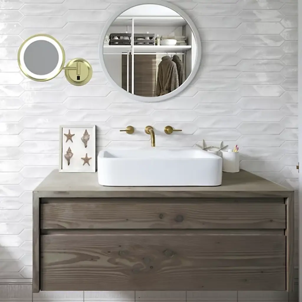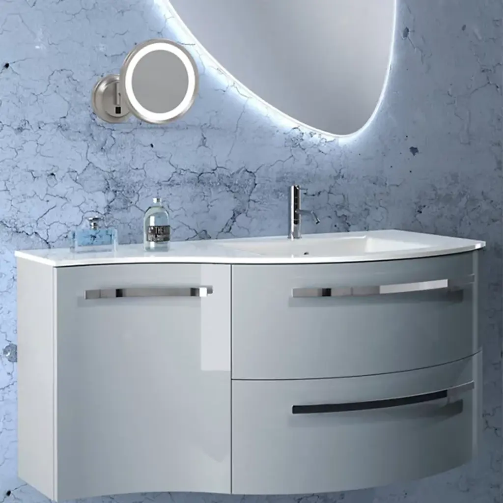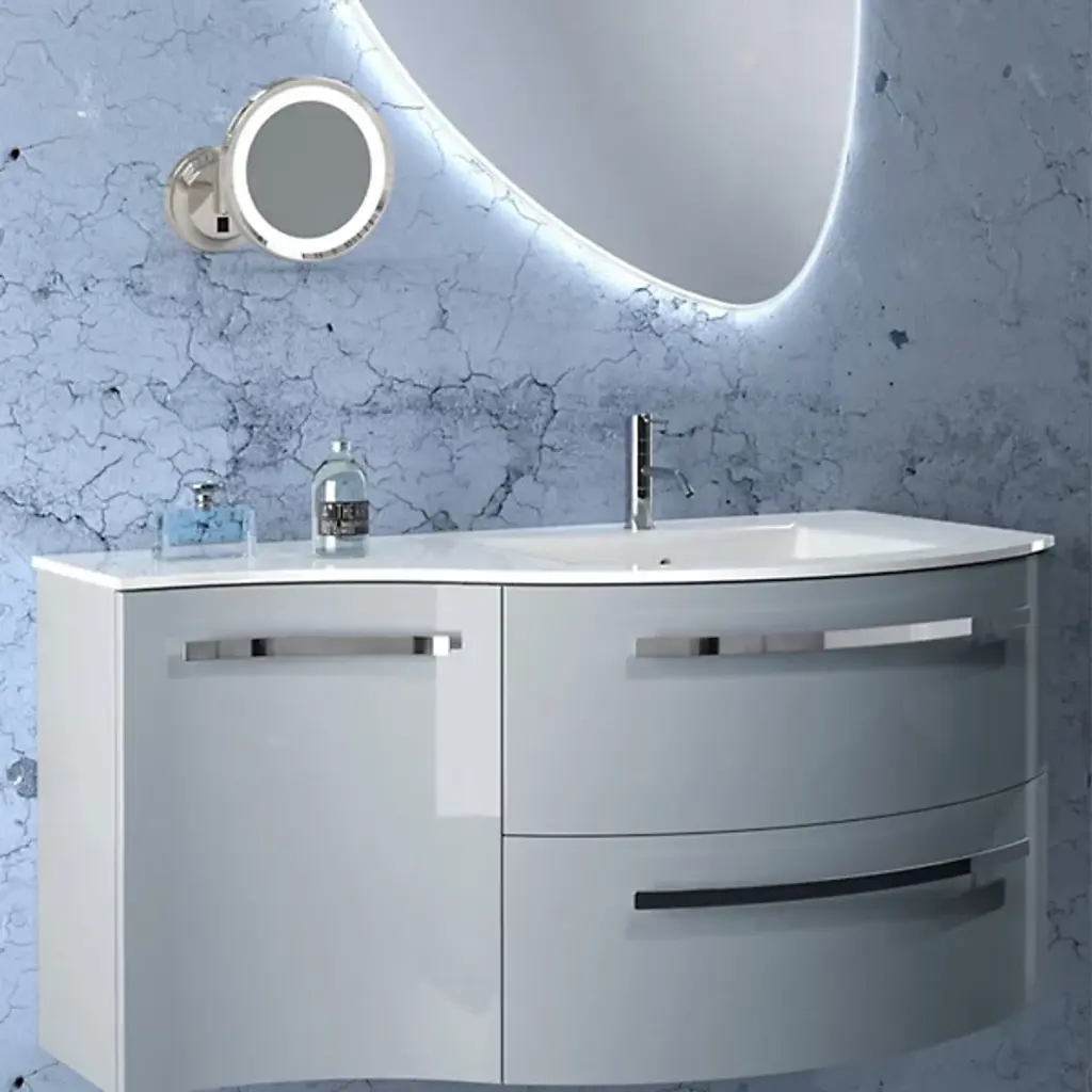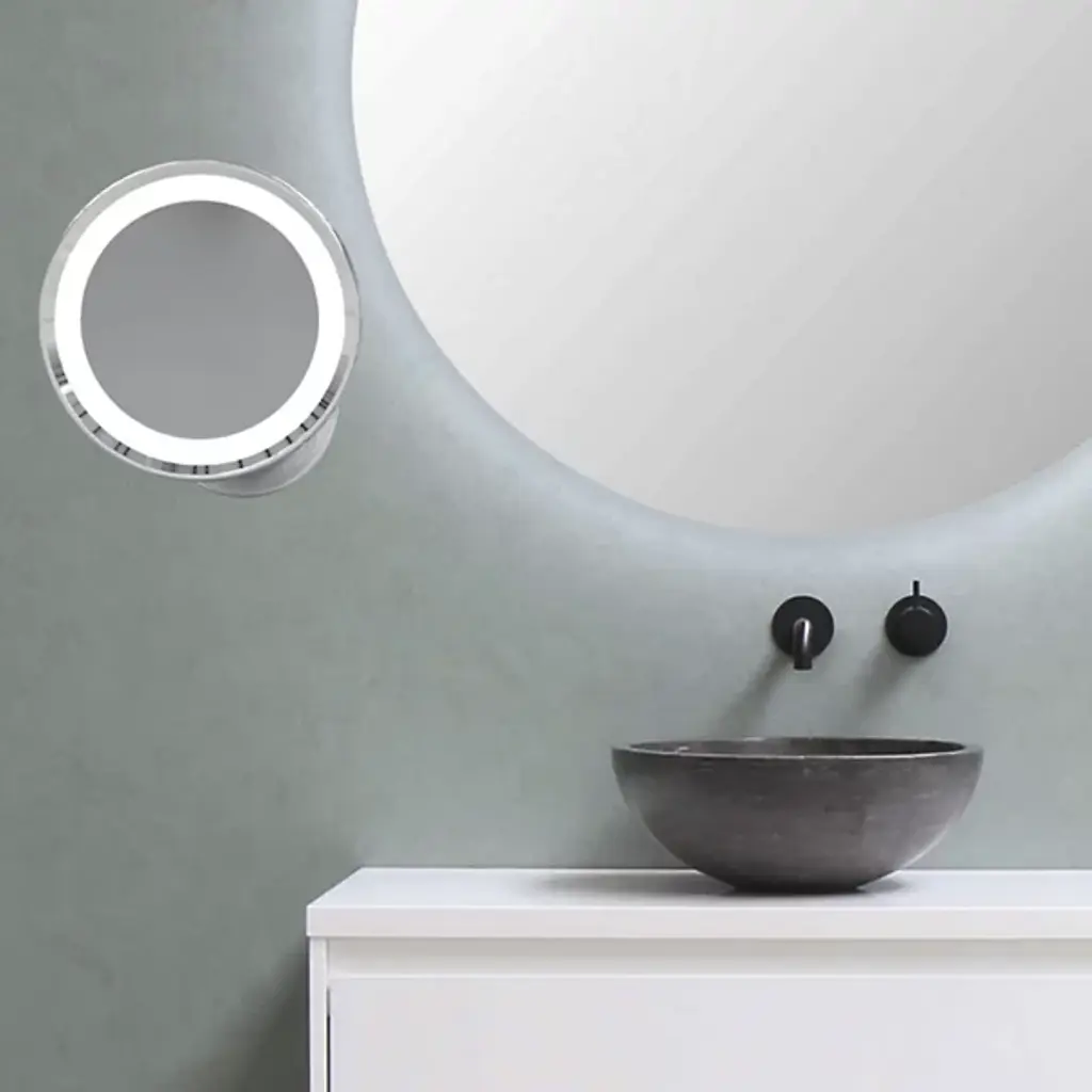 The Wall Mounted Single-Sided Round LED Mirror combines sophisticated functionality with modern design sensibility. This versatile fixture offers complete customization with 360-degree rotation at both the elbow and mirror, plus adjustable LED lighting that transitions between warm (3500K) and cool white (5500K) illumination. Crafted from metal and glass, this hardwired sconce includes all mounting hardware for easy installation. Its contemporary design and ample flexibility make it an inspired option for any vanity space.