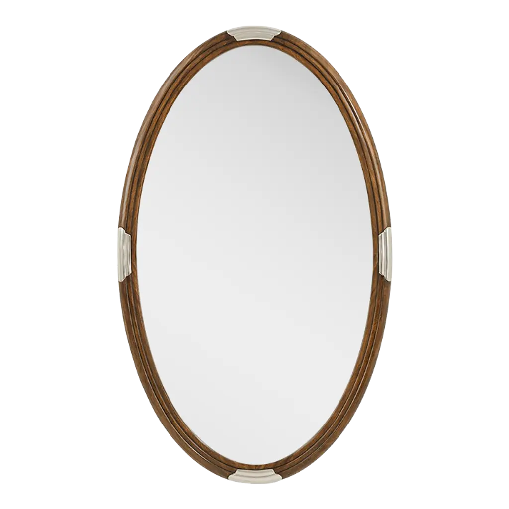 Mirror beautifully embodies early 1900s design ideals with its clean lines and elegant, rounded shape. Framed in exquisite figured walnut with a molded edge, this mirror showcases timeless craftsmanship and understated sophistication. Its refined silhouette enhances any interior, from classic to contemporary spaces.Perfect for entryways, bedrooms, or living areas, this mirror adds depth and elegance while complementing a variety of decor styles. The high-quality construction ensures durability, making it both a functional and decorative statement piece.Dimensions: 30" W x 2" D x 50" H