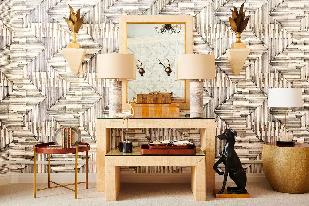 Hand wrapped grass cloth over a wood frame, the Warrick Mirror brings understated beauty to a classic silhouette.