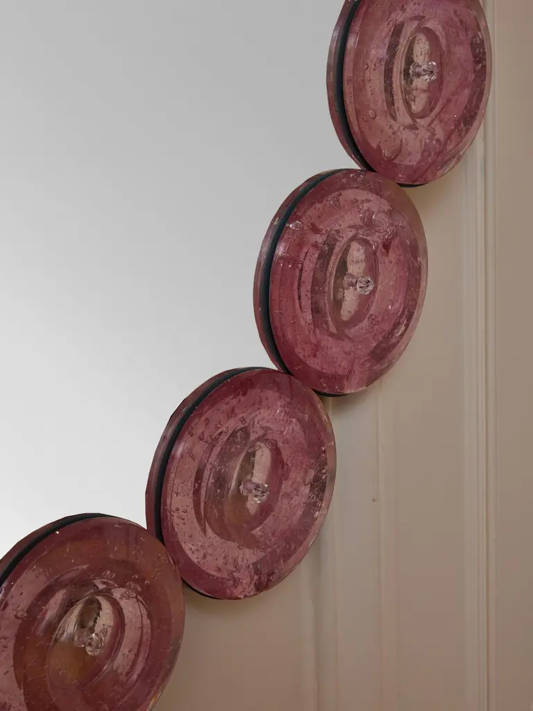 Pair of "Water Drop" mirrors in pink Murano glass.Creation by Studio Glustin.Italy, 2023.