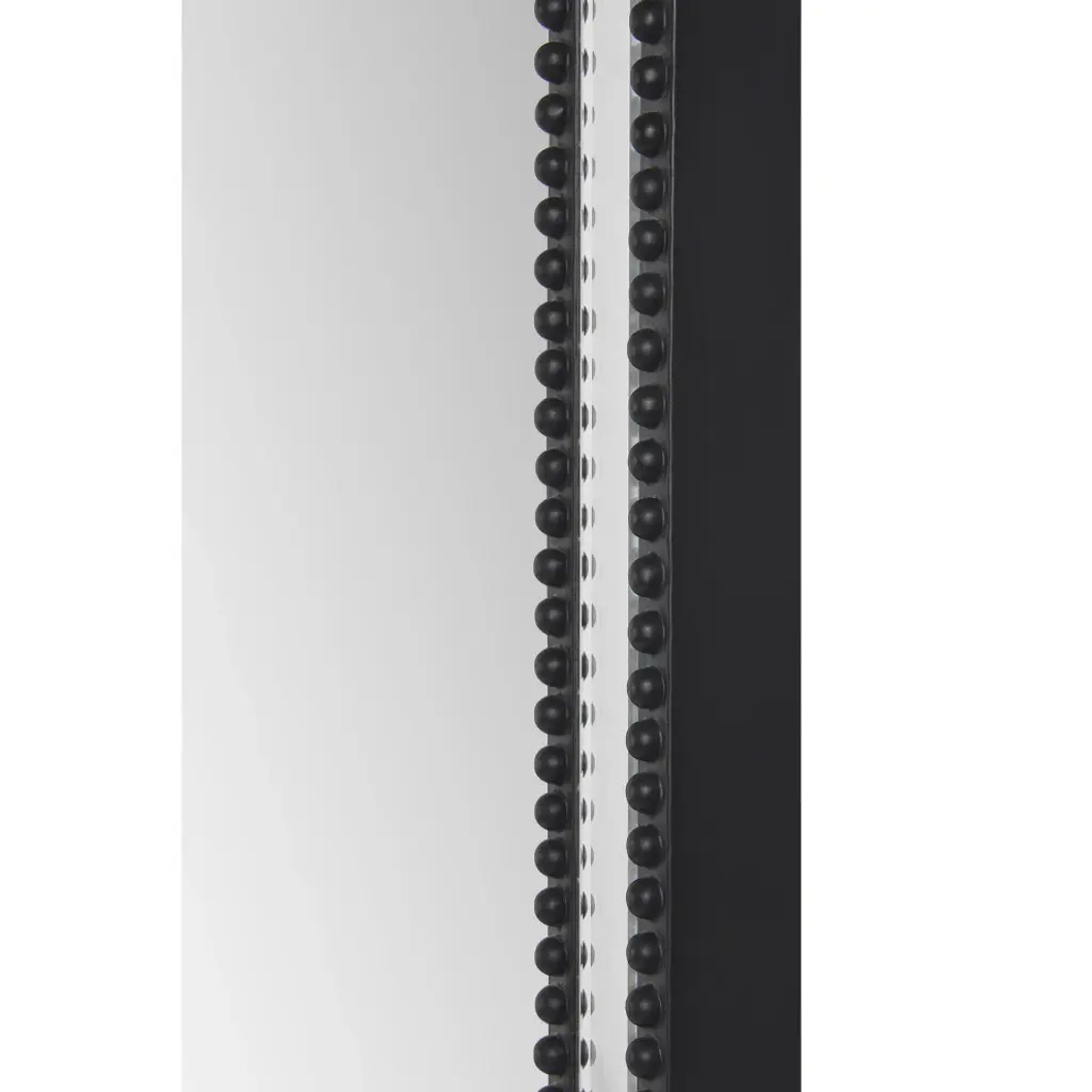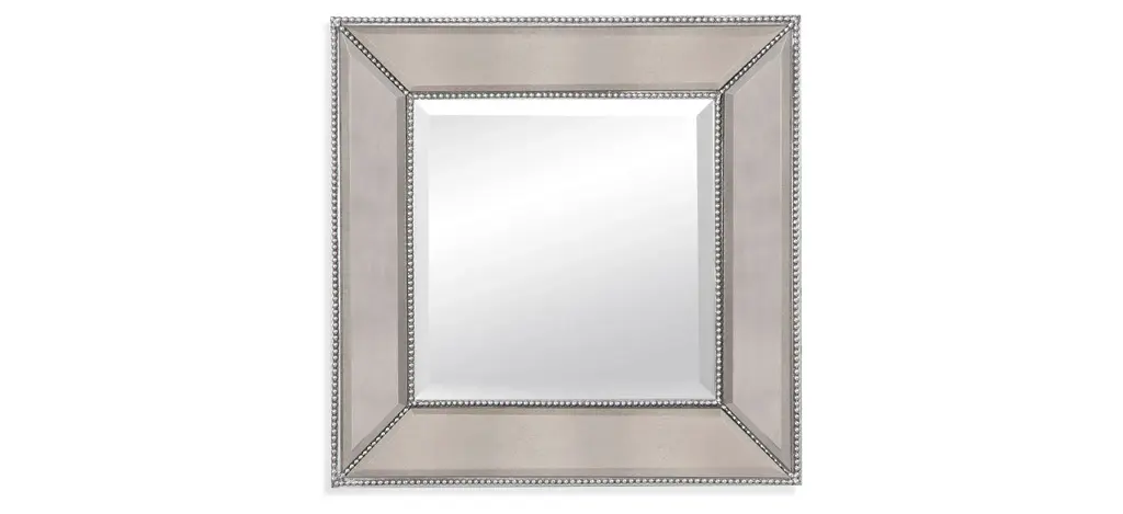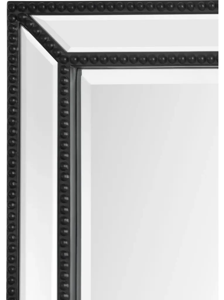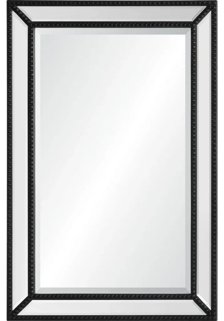 Modern aesthetic and traditional details intertwine within this mirror design. The twinkling clear mirror is grounded by painted details, set in a stately and sophisticated style. Arranged vertically or horizontally, the 36 by 24-inch structure has the capacity to capture and reflect several angles of a space.