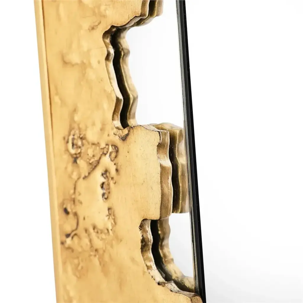 The Weathered Edge Mirror is a sophisticated piece that elevates ornate tones with stunning textural depth. The slender beech wood frame contains a square mirror with elegant bevels and features a slim, weathered look in a gorgeous Gold Coast finish. This mirror is installed using four-way cleats and may be displayed in vertical or horizontal orientations.