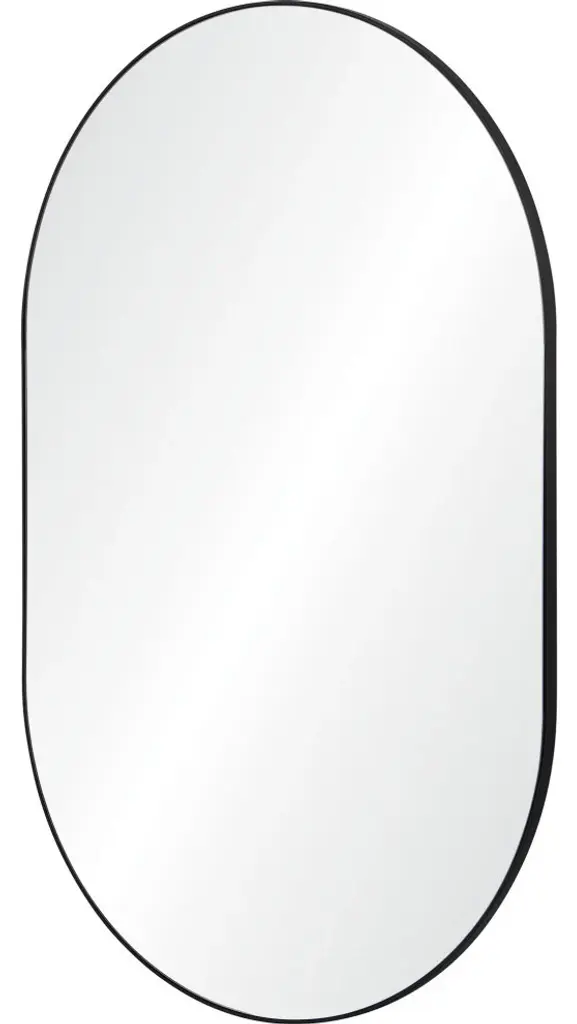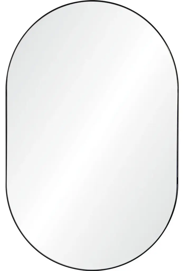 Simple, sleek and high style. This oval-shaped mirror has a minimal black powder coated iron frame. The look is modern, letting the reflection take center-stage.Hardware Included: Yes