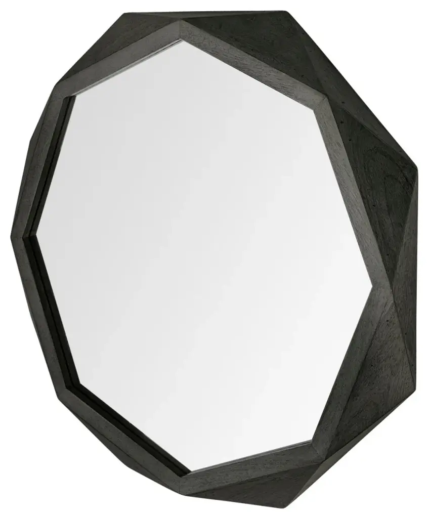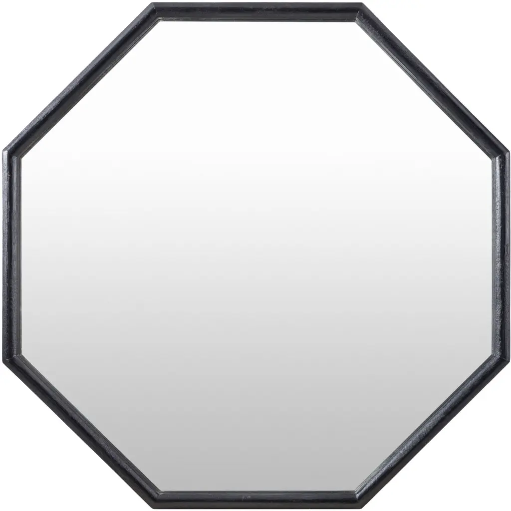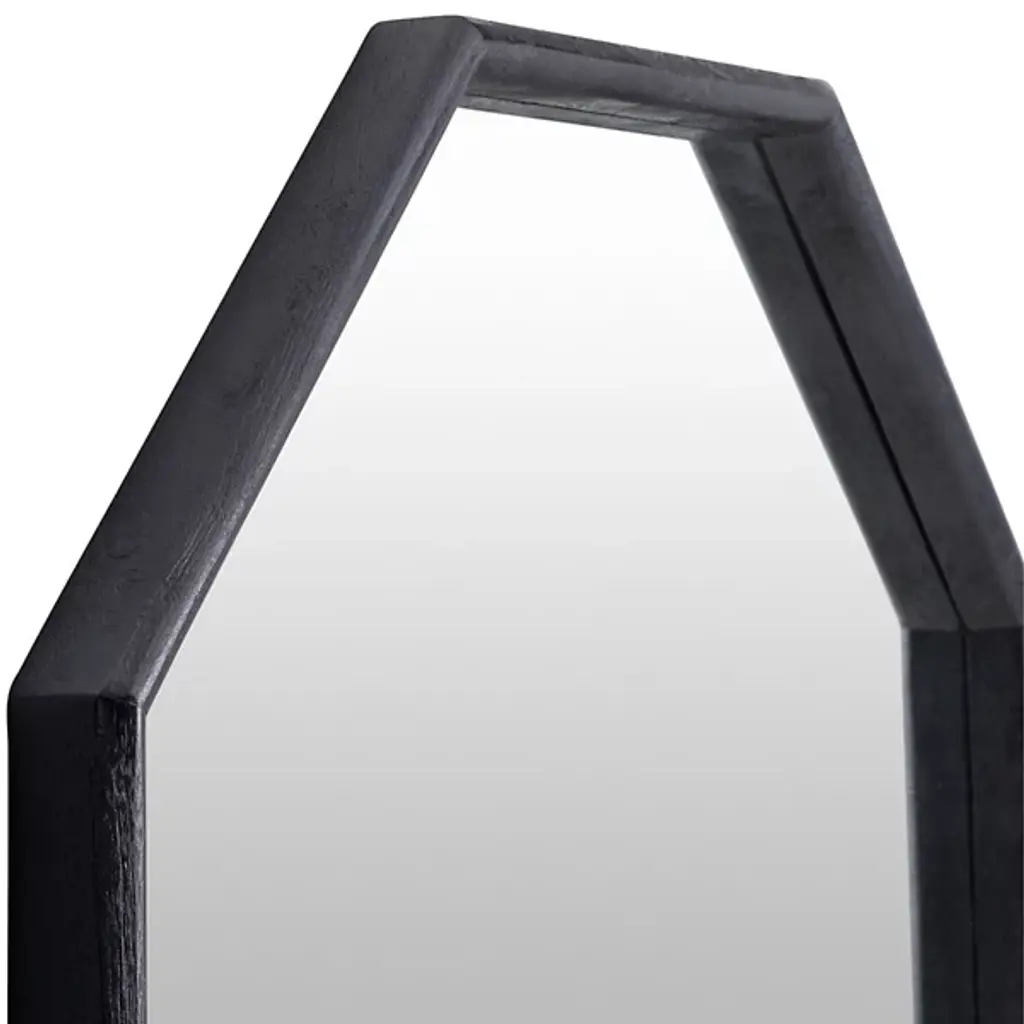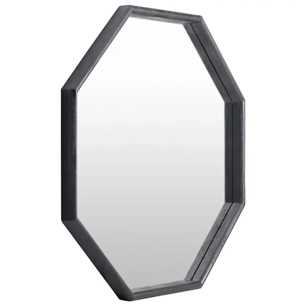 The Weipa Mirror from Surya blends artisanal modern style with practical design. An octagonal mirror made in India with a durable mango wood frame, this vertical-mount mirror features a geometric design, contrasting its clean-surfaced central reflector with the natural woodgrain of the frame. The thin wood elements offer a delightful enhancement, softening the angular corners of the reflector.