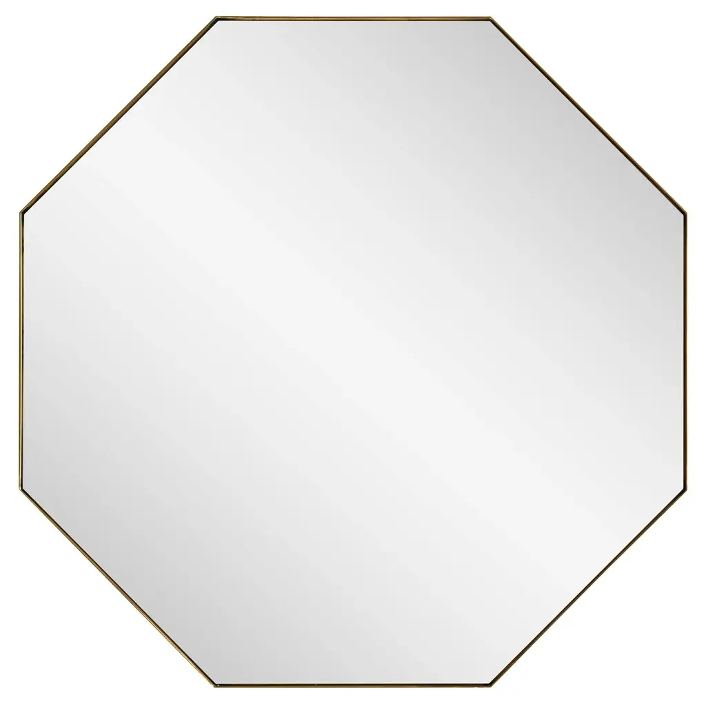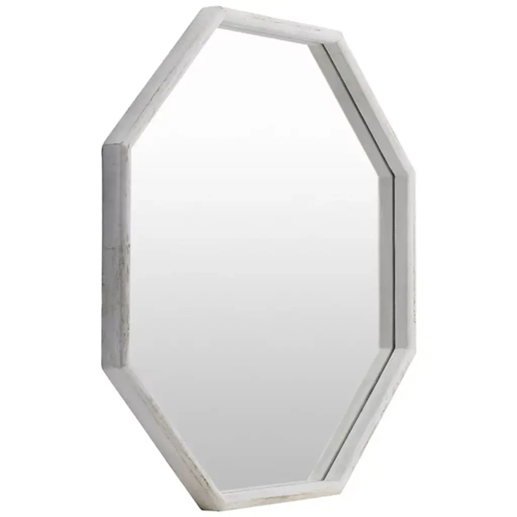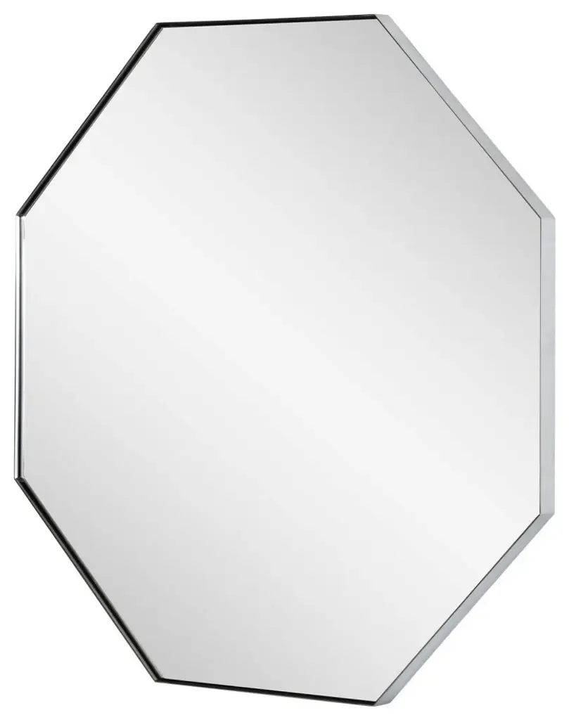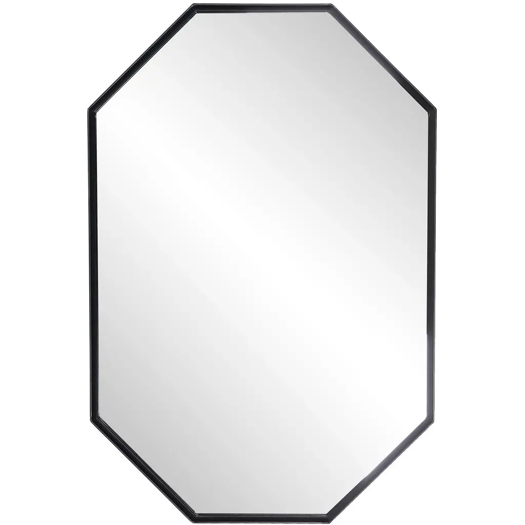 The Weipa Mirror from Surya blends artisanal modern style with practical design. An octagonal mirror made in India with a durable mango wood frame, this vertical-mount mirror features a geometric design, contrasting its clean-surfaced central reflector with the natural woodgrain of the frame. The thin wood elements offer a delightful enhancement, softening the angular corners of the reflector.