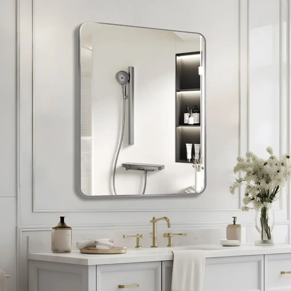 This sophisticated rectangular mirror combines contemporary elegance with exceptional functionality, making it an ideal choice for modern interiors. The high-quality 4mm HD glass delivers crystal-clear, distortion-free reflections for accurate viewing. Its durable frame features brushed premium aluminum alloy that resists rust while adding a sleek metallic accent to your space. For enhanced safety, the mirror incorporates shatterproof film and reinforced backing to prevent breakage and ensure secure use. Complete with reinforced hanging hooks, mounting hardware, and an easy-to-follow installation guide, this mirror offers effortless setup. Perfect for living rooms, bedrooms, or entryways, its clean lines and refined design elevate any decor while providing reliable performance and lasting durability. The combination of style and practical features makes it both a decorative statement and functional essential.