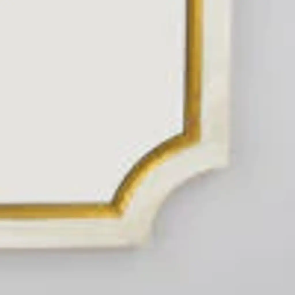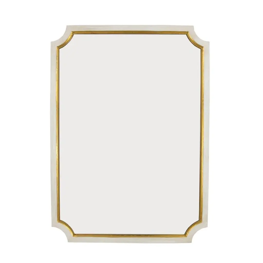 This mirror exudes charm and elegance with reverse-scalloped corners. Classic and timeless, accessorize your living space and with the magnificent styling of this beautiful mirror. Perfectly finished antiqued white and gold color gives a unique look and charm.