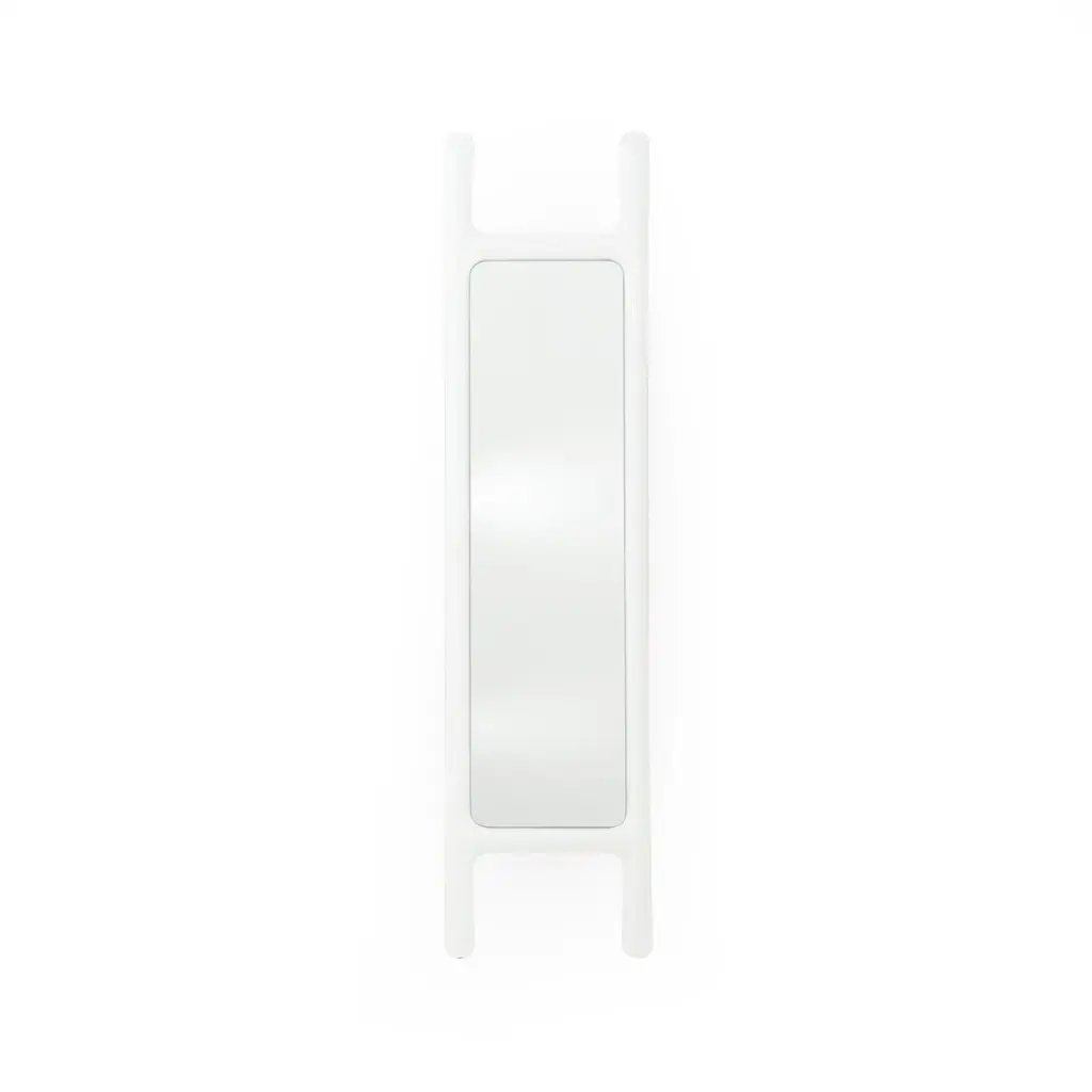 White drab sculptural wall mirror by ZietaDimensions: D 6 x W 46 x H 188 cm Material: Mirror, carbon steel. Finish: Powder-coated in white glossy.Also available in colors: stainless steel, or powder-coated. A DRAB mirror is an object that combines a steel frame with a glass mirror. It is an effect of the experiments with the inflated steel created with the use of FiDU technology that has led Oskar Zieta to create a DRAB hanger and DRAB mirror.DRAB mirror owes its name to its simple form that resembles a ladder (in Polish “drabina”). It is a minimalist object with an elegant framing that can be hung on a wall or leaned against it. In both arrangements, it will add a pinch of elegance to every contemporary interior.DRAB mirror is a geometrical mirror and a decorative object. Contrary to such mirrors from Zieta Collection as RONDO, TAFLA, or OKO, the inflation effect is not so obvious in its case. The deformations of the inflated steel are subtle just as the slender vertical shape of the mirror. The delicate folds are highlighted in the convexity of this simple form.The DRAB mirror can be used as a bedroom or bathroom mirror. It will also serve perfectly as the finishing touch in a modern or classical hallway or corridor. It is a perfect decorative object for private and public spaces such as hotel rooms and SPA parlors.About Zieta: Zietas main goal is to deliver uniqueness and customization in design and construction while keeping the production, transport, and warehousing innovatively efficient.This is how they imagine the future world: Light, durable structures of customized applications produced on demand out of one-of-a-kind parts, yet efficiently.They use a computer-controlled production process. Customized pattern, customized form, customized function, one-of-a-kind product, and outstanding precision are what they deliver.You will find all of this philosophy reflected in the products. They research, they discover new possibilities, they play with forms and they deliver a beautiful, innovative, surprising outcome to people who love the design and who care about design development.They believe their work is a valuable contribution to the world of design not only by the unique beauty of the forms but most of all by opening ultra-innovative opportunities of forming and new paths for the world of the future.
