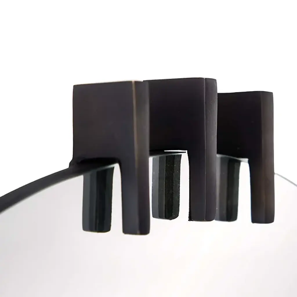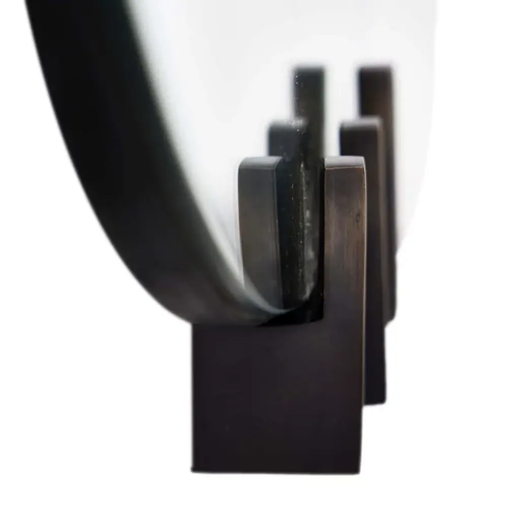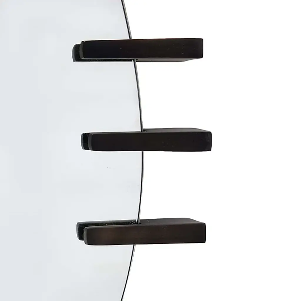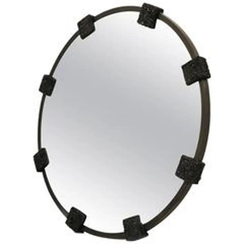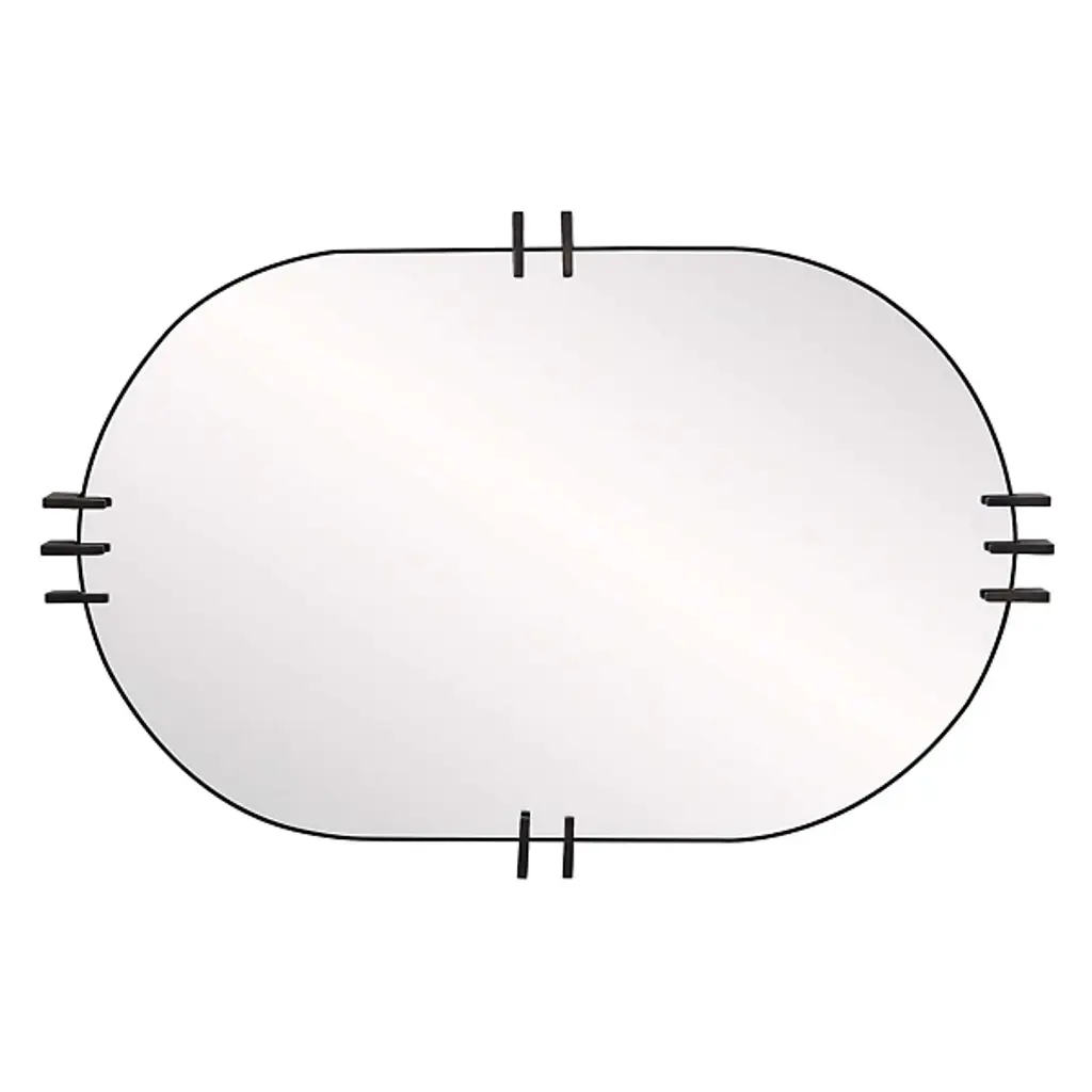 Ornament wall spaces with the elegant, essential silhouette of the Wilder Mirror from Arteriors. It’s an oval reflector gathered in slender iron brackets that suggest fine jewels. The reflector enlarges its surroundings with ease. A thin band of iron escorts the gently rounded mirror and can be hung vertically or horizontally, supported by a security cleat.