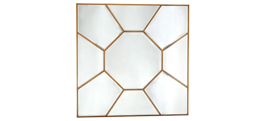 Enhance The Modern Elements In Your Home With Wallis Wall Mirror. This Geometric Patterned Long Wall Mirror Was Designed As A Backdrop For Bedside Tables. With Its Radiant Gold Leaf Finish, This Eye Catching Mirror Will Bring Dimension And Depth To Your Space. (Also Available In Silver Leaf)