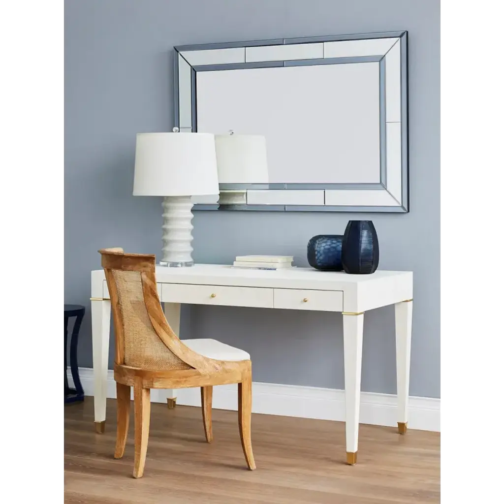 Our designers have updated and simplified regal Georgian styling with the William Mirror while imbuing it with splendid charm. The result? A versatile accent that can slip into any room with a sense of quiet elegance. Its effortlessly upscale impression is all thanks to Villa & House’s quality craftsmanship. The classic rectangular shape finds depth and dimension in a hand-refined, three-layered border, which consists of finely cut and beveled mirrored baguettes placed around the center looking glass. A smokey gray shadowing on the inner and outer edges of glass provides a pop of visual contrast and subtle complexity to this otherwise straightforward wall piece. Install the William in an entryway for last looks before stepping out, horizontally over a sofa, or paired up to flank a large fireplace.