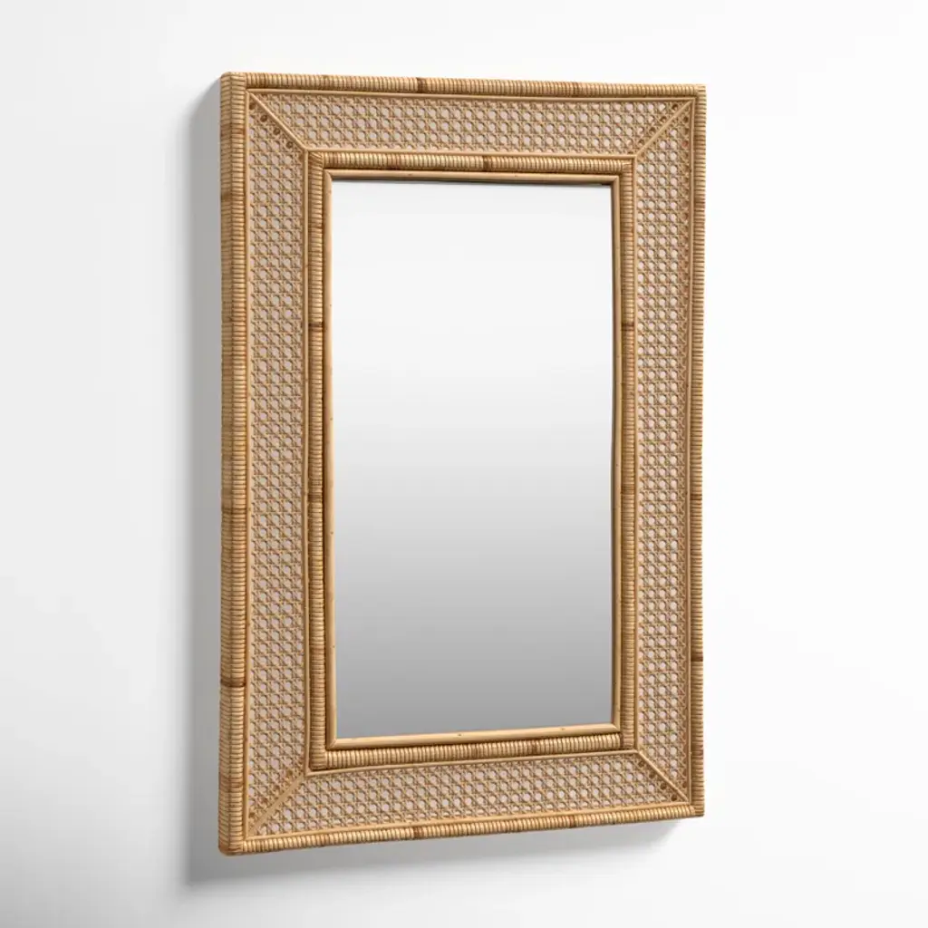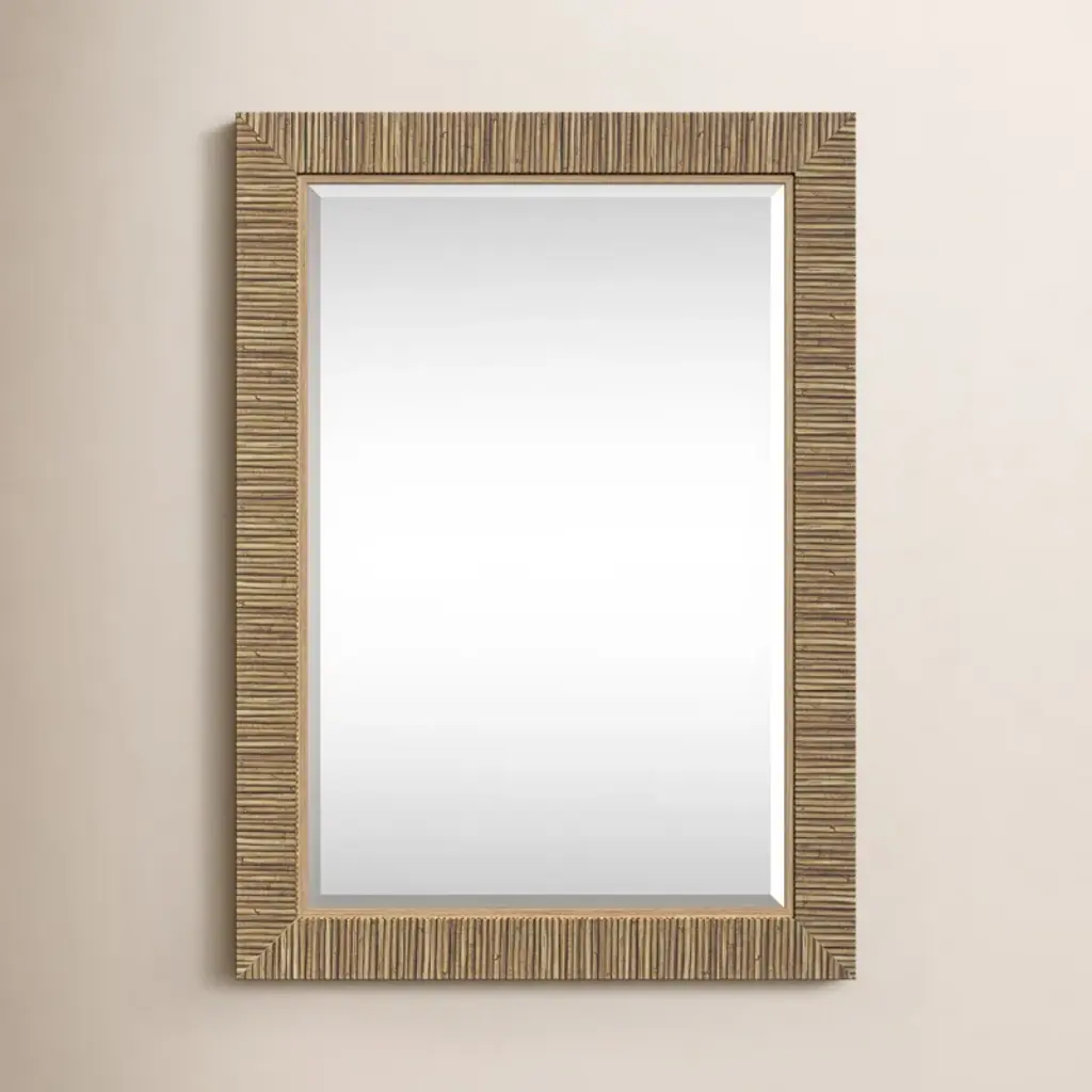 Add a touch of coastal charm to any room with this accent mirror. The rattan frame, handcrafted with beveled glass, effortlessly elevates your space. Easily hung either vertically or horizontally to suit your needs.