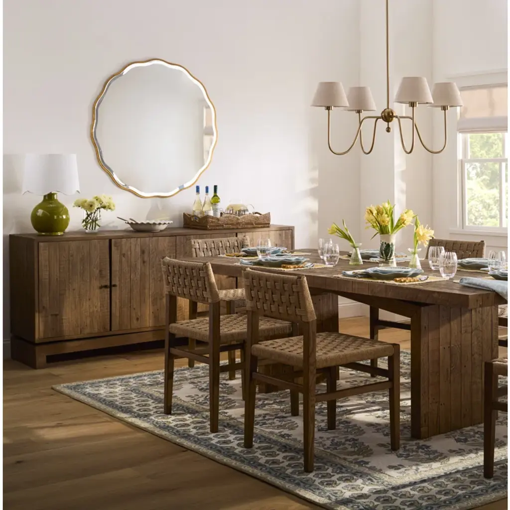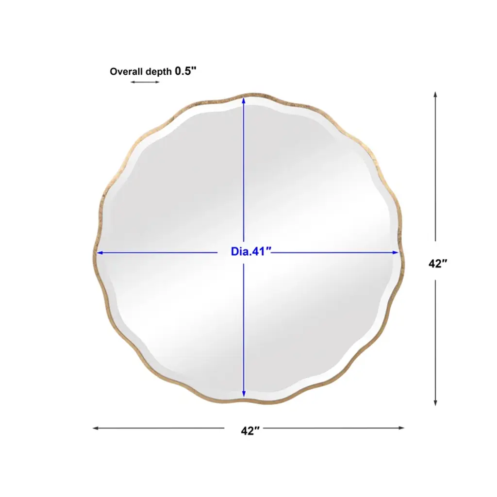 Showcasing a feminine scalloped edge, this shaped wood mirror adds whimsical flair to any design. The mirror has a 1" bevel.