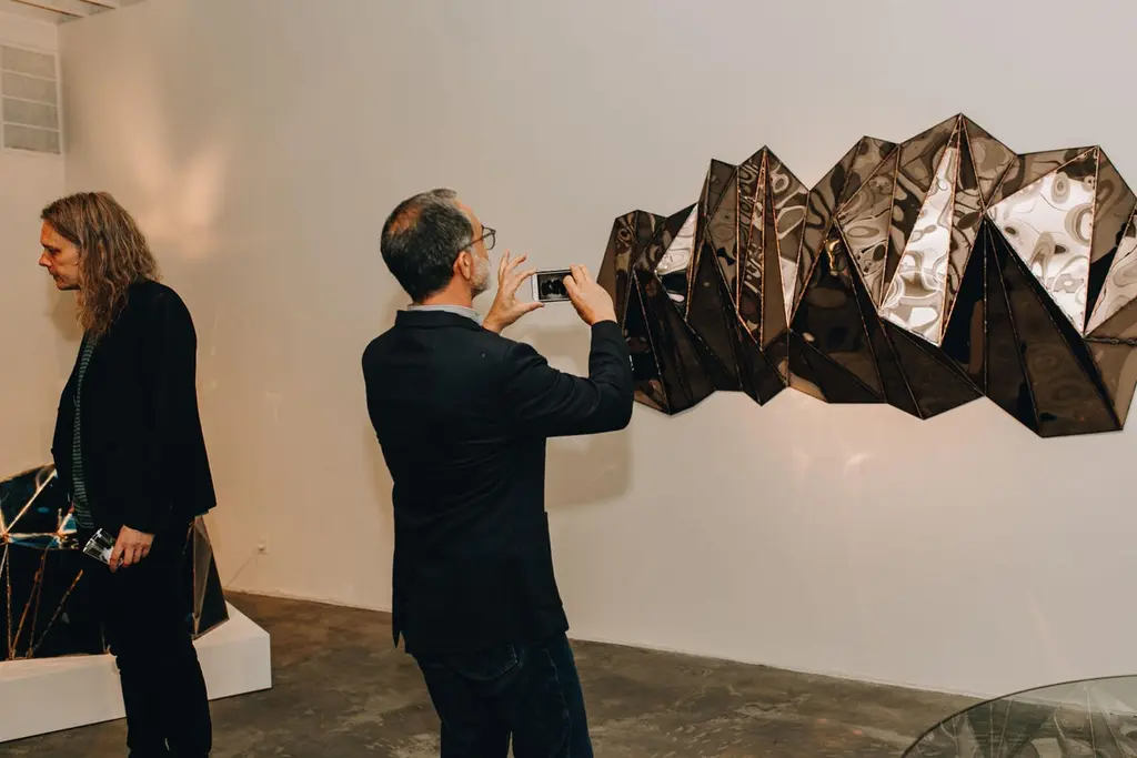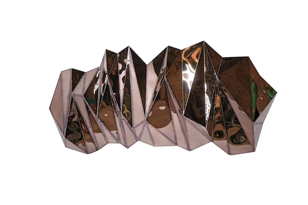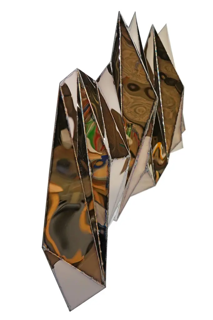 Wing Wide Wall Piece in Welded Mirror-Polished Stainless Steel by Julian MayorLimited Edition of 5 + 4AP.Dimensions: D 25 x W 228 x H 122 cm. Materials: Mirror-polished stainless steel.Julian Mayor is a British artist and designer renowned for his sculptural works crafted from welded sheet metal. Using high-tech design processes, the artist creates each piece digitally on a computer before building it by hand in his workshop. Born in 1976, Mayor graduated with a BA in Industrial Design from the University of Northumbria in 1998, followed by an MA from the Royal College of Art in Design Products under Ron Arad. After graduating in 2000, he moved to Northern California and worked for a design consultant agency as a product and interior designer. By 2004, Mayor returned to London to work for UK-based agencies, including Pentagram, and collaborated with British designer Tom Dixon. The artist’s work has been exhibited at the Victoria & Albert Museum, London, the Museum of Arts and Design, New York, MUDAC Lausanne, Switzerland, and the Yorkshire Sculpture Park, UK. He has installed a permanent series of sculptural benches in a park behind the Tate Britain in Pimlico, London. Mayor lives and works in Doncaster, South Yorkshire, UK.