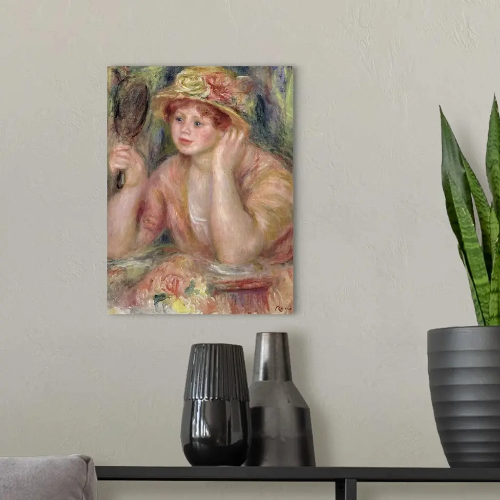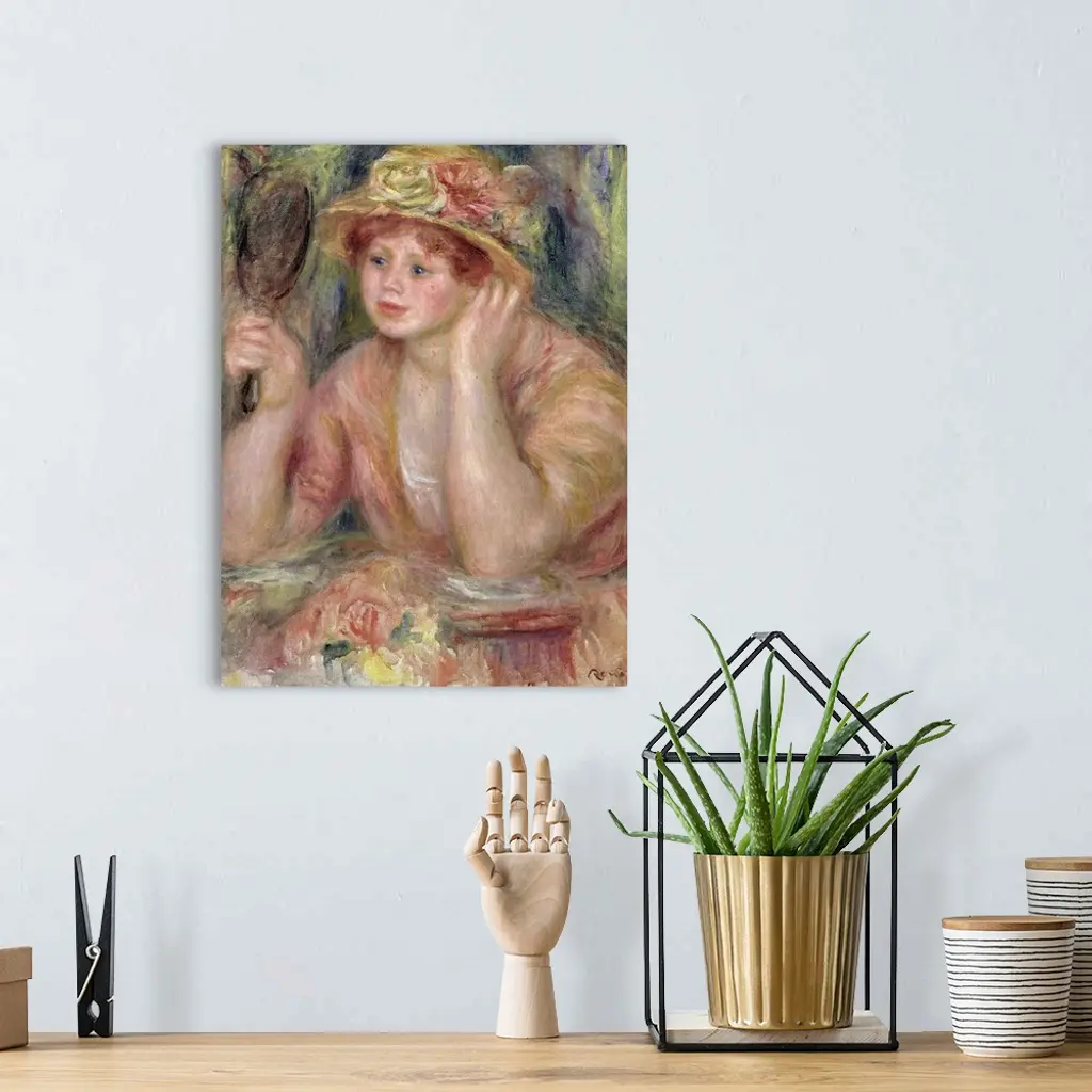 XOU28095 Woman with a Mirror, c.1915 (oil on canvas) by Renoir, Pierre Auguste (1841-1919); 59.5x46.5 cm; Musee des Beaux-Arts, Rouen, France; Giraudon; French, out of copyright