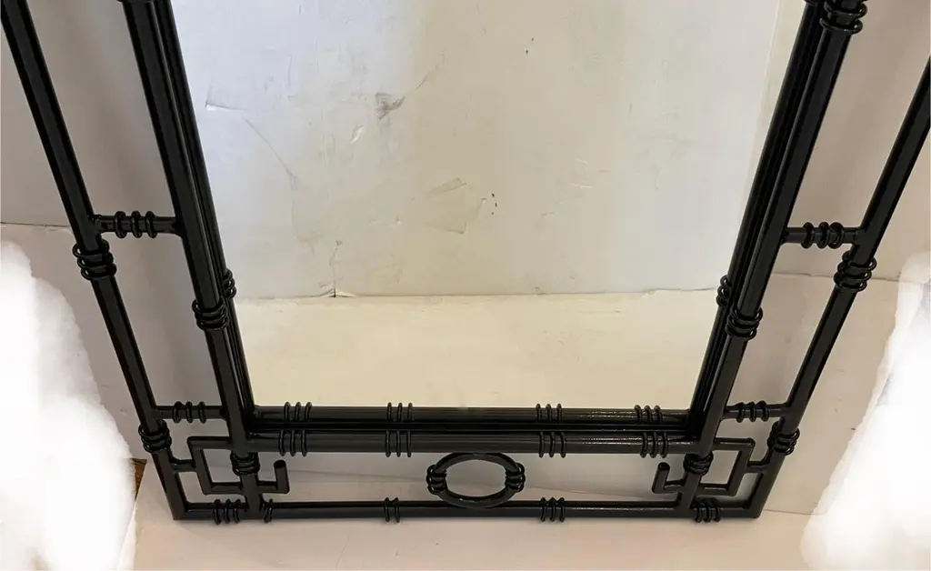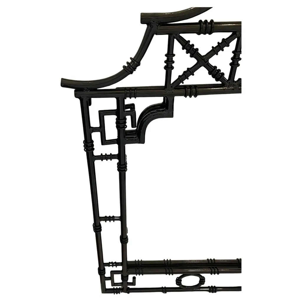 Wonderful Pair Black Enamel Gloss Lacquered Chinoiserie Pagoda Iron Mirrors