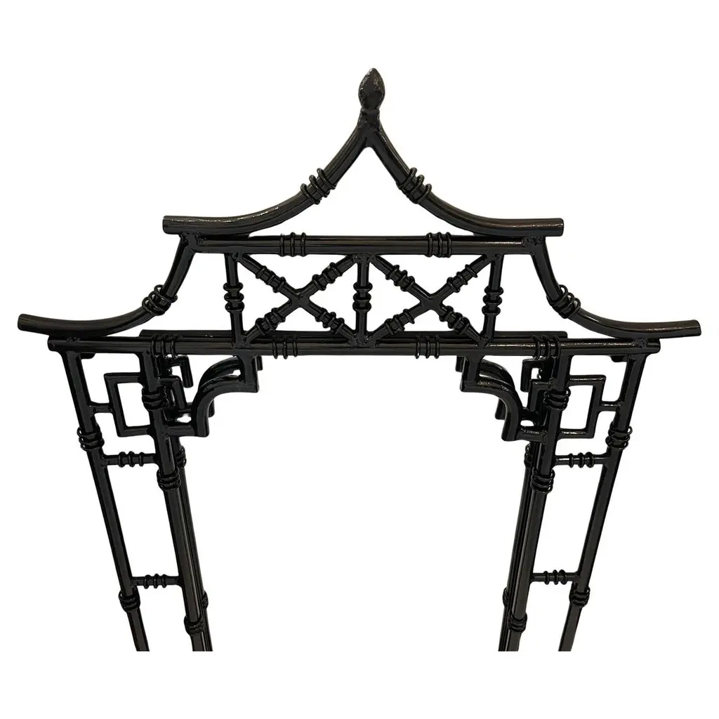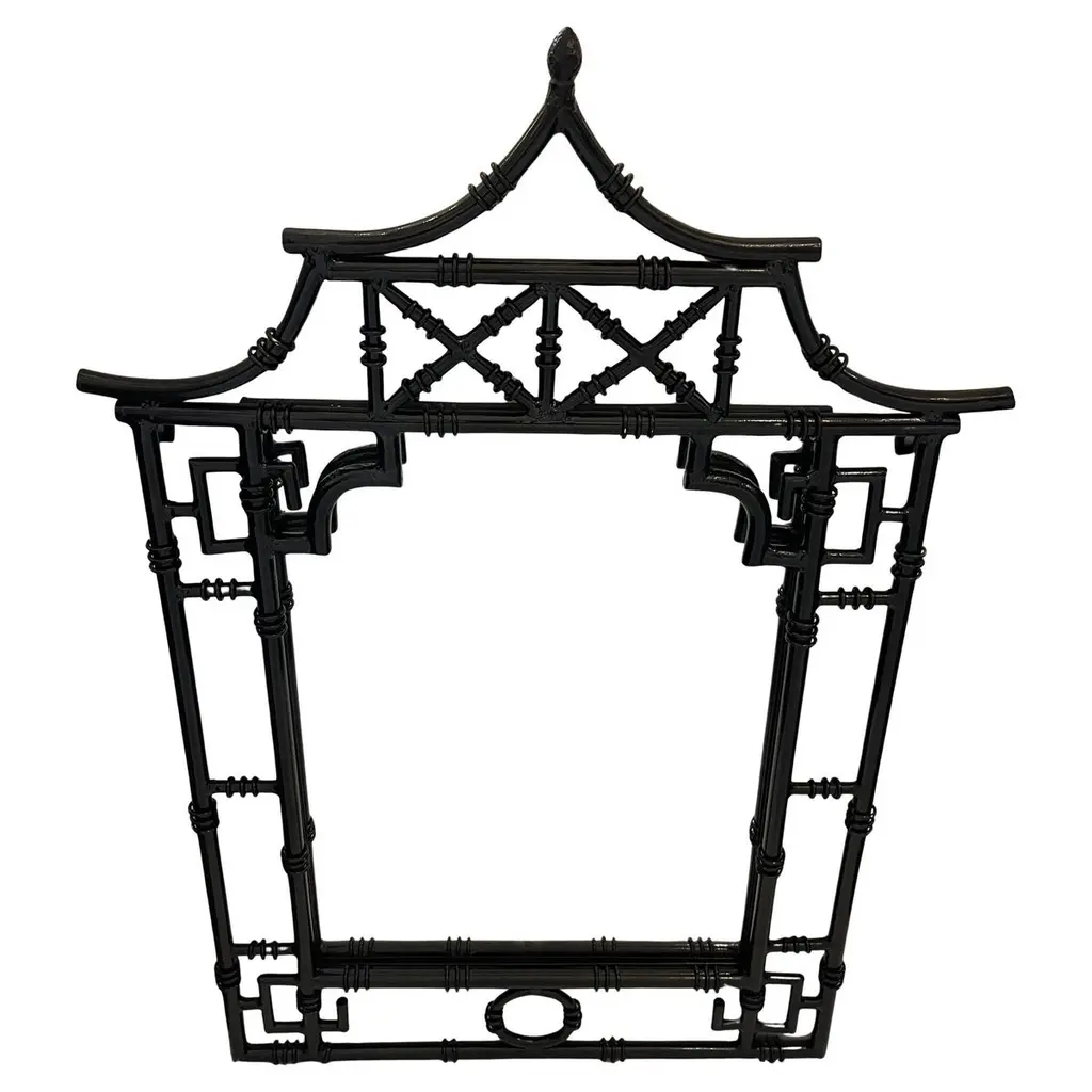 A Wonderful Pair Of Black Enamel / Gloss / Lacquered Chinoiserie Style Pagoda Form Iron MirrorsEach Sold Separately