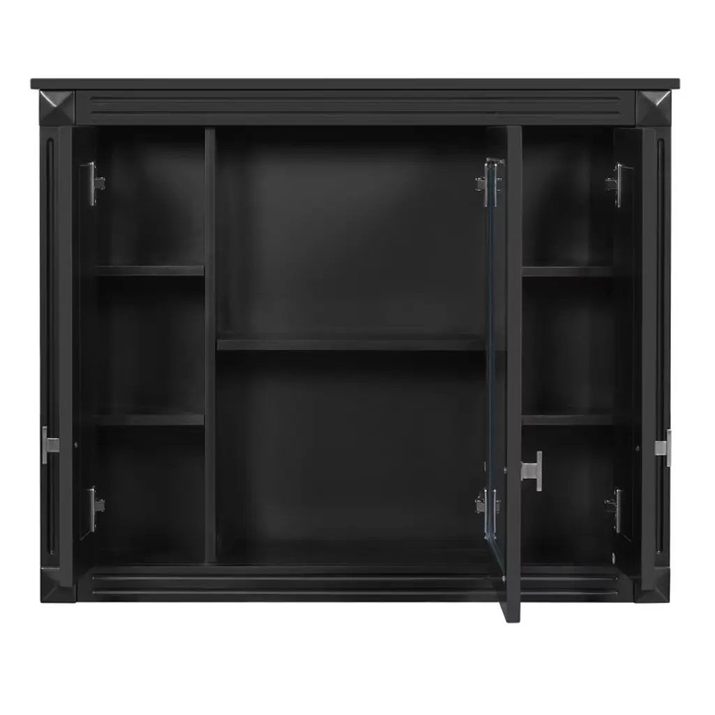 Wooakway 29"h Black Bathroom Mirror Medicine Cabinet With 4 Shelves Wall Mounted Storage