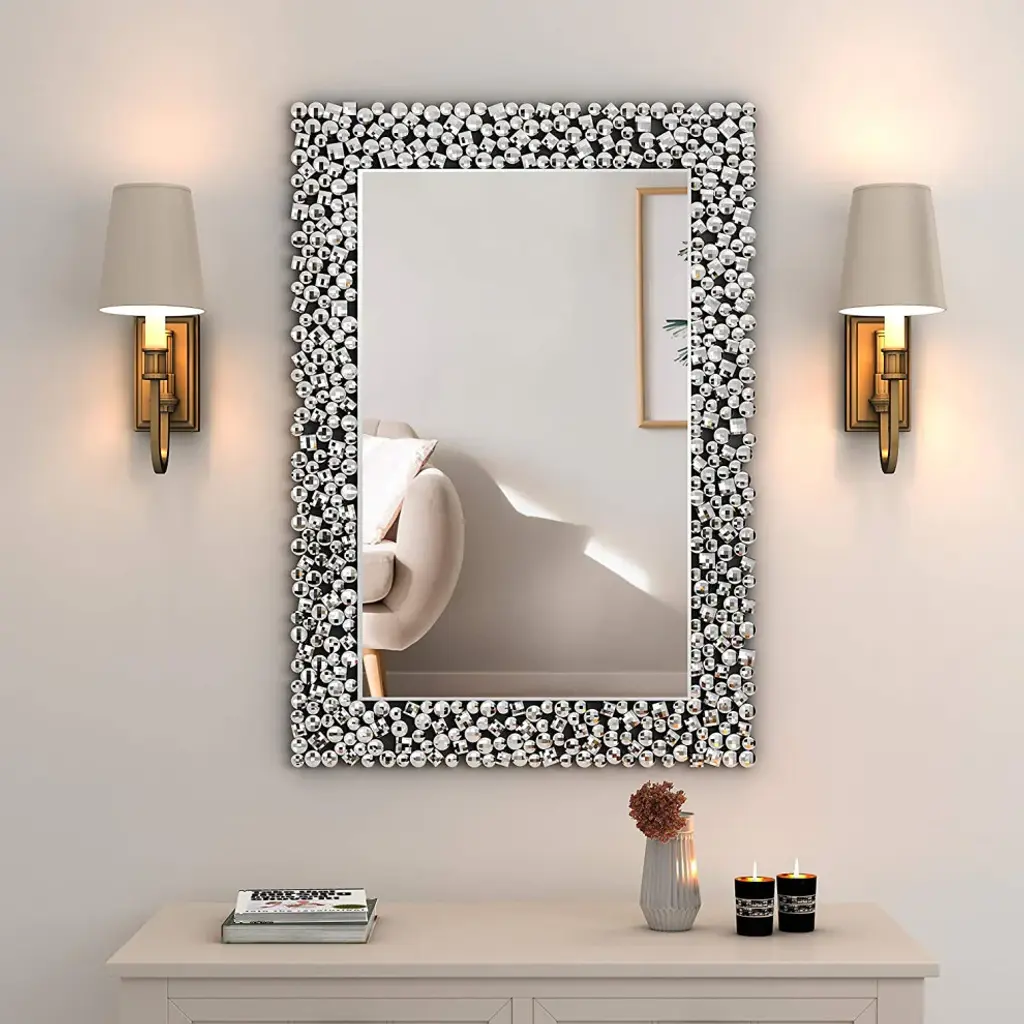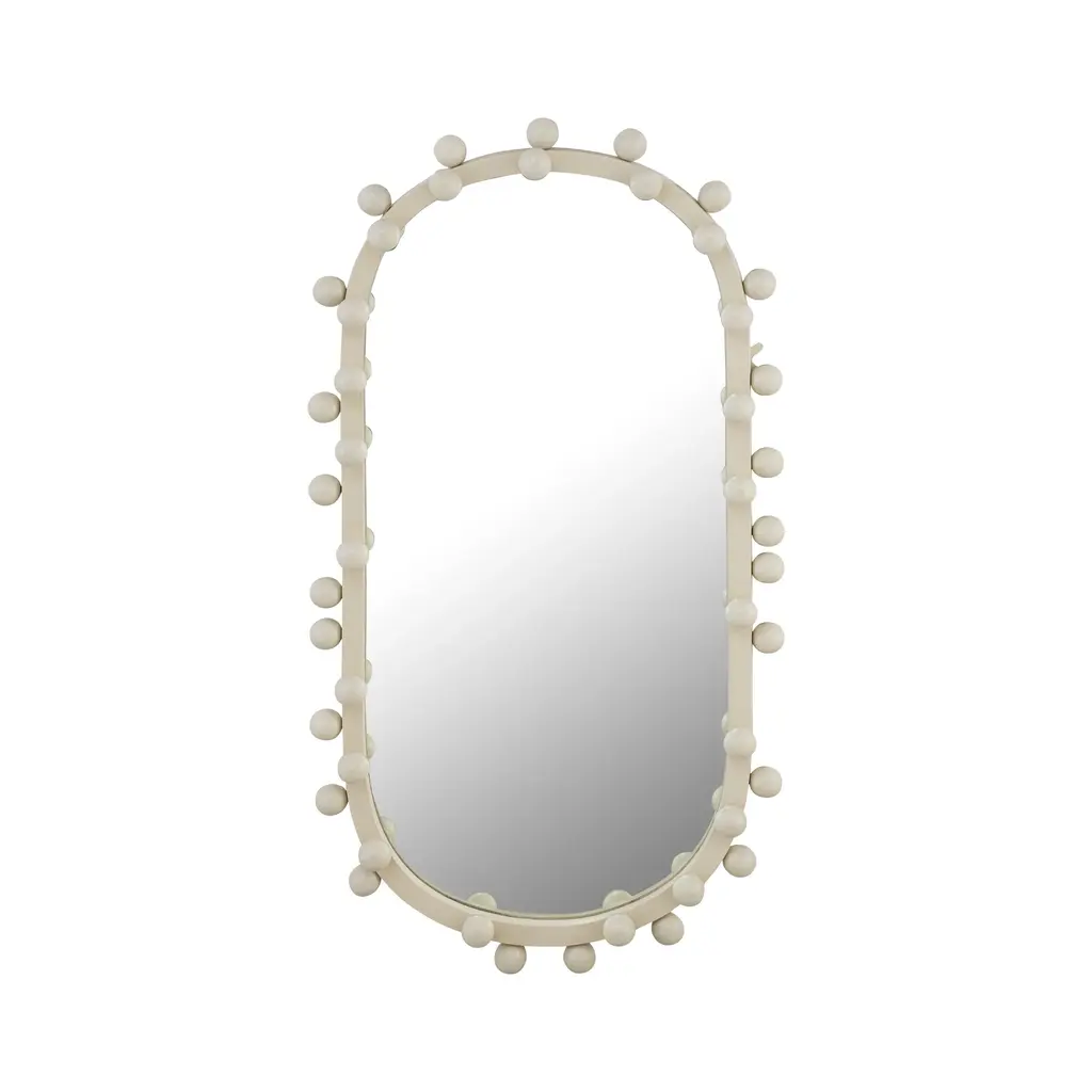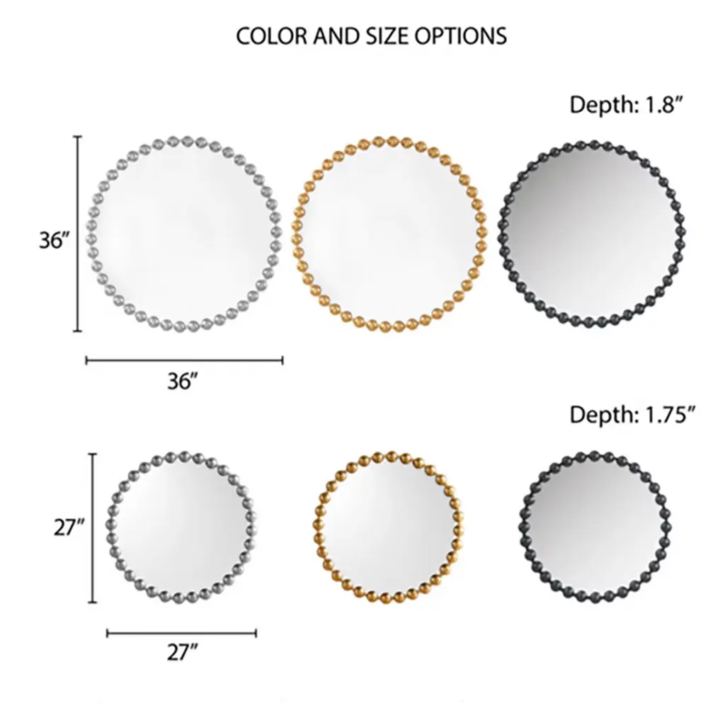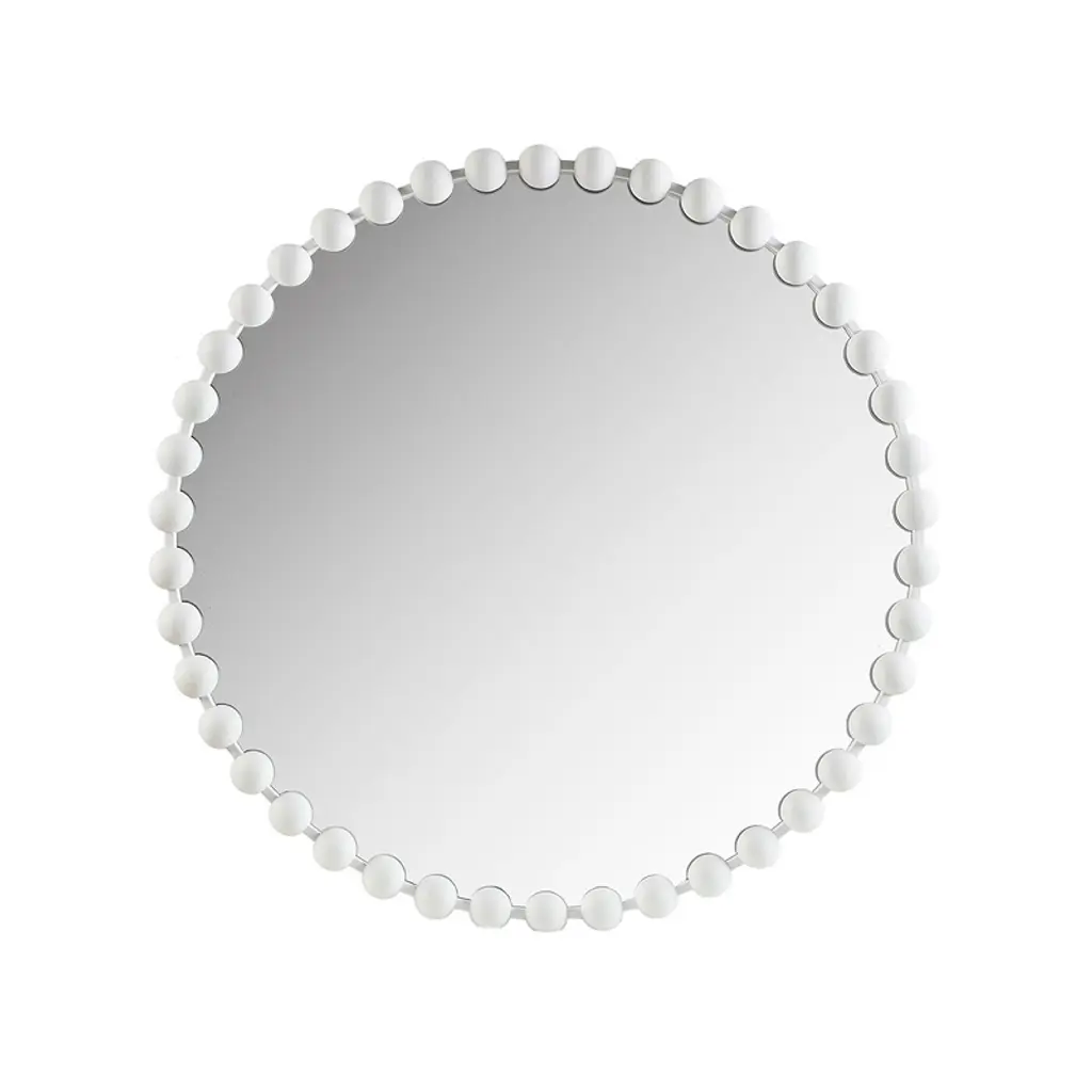 Reimagine your space with our Madison Park Signature Marlowe Beaded Round Wall Mirror. This round mirror features a stylized spherical iron frame finished with matte white foil, creating a bold and glamorous allure. The keyhole hook fixture on the back of the mirror allows for effortless hanging on your wall. Measuring 36x36" easily incorporate this mirror into any small space, bedroom, or entryway - for the perfect combination of modern glam and flair. Wipe clean with damp cloth and handle with care.