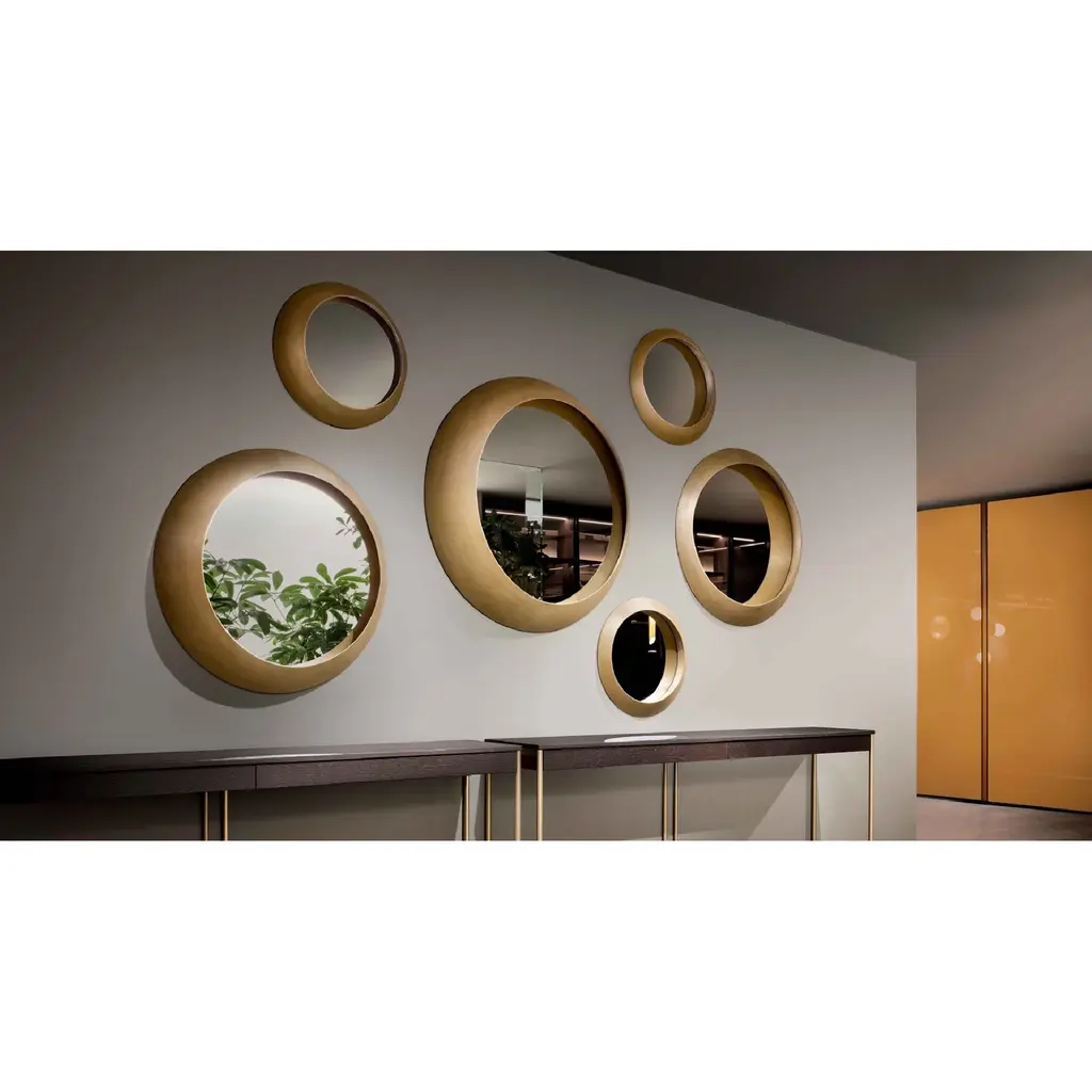 The Wood Framed Round Mirror by Lema Oculus is Andrea Mancuso's poetic style based around playfulness and surprise is at the heart of Oculus, a wall mirror that goes far beyond the boundaries of its main function. Almost sculptural in its design, this mirror will leave you open-mouthed. The evocative, circular frame encloses a circular mirror inside, yet the reflection varies depending on your point of view, creating a hypnotic effect. Named after the Latin word Oculus, which referred to a circular opening similar to an eye.