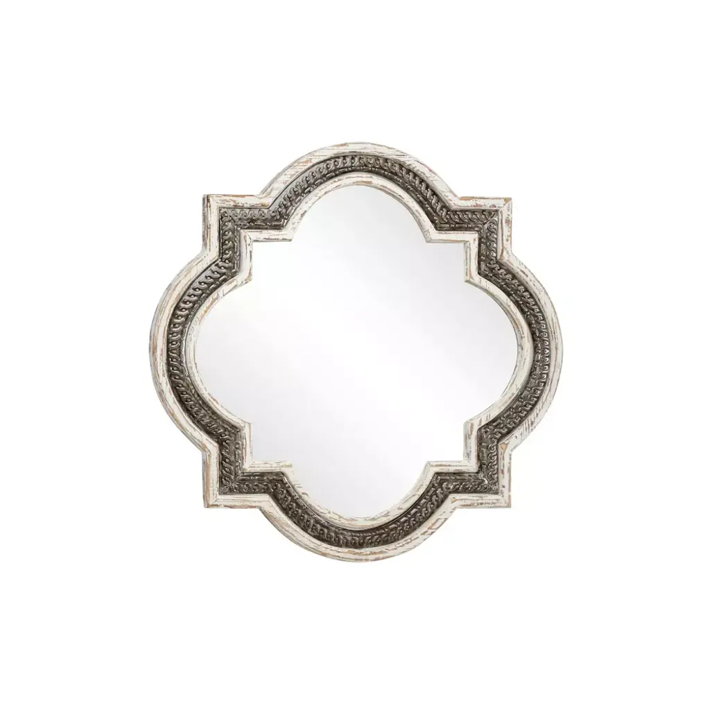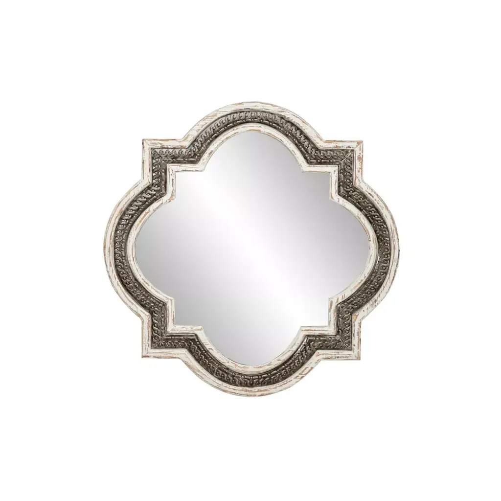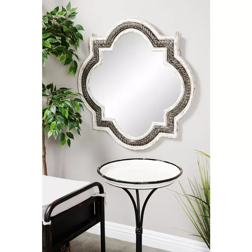 Wood Quatrefoil Wall Mirror White - Olivia & May: Baroque Iron Inlay, No Assembly Required