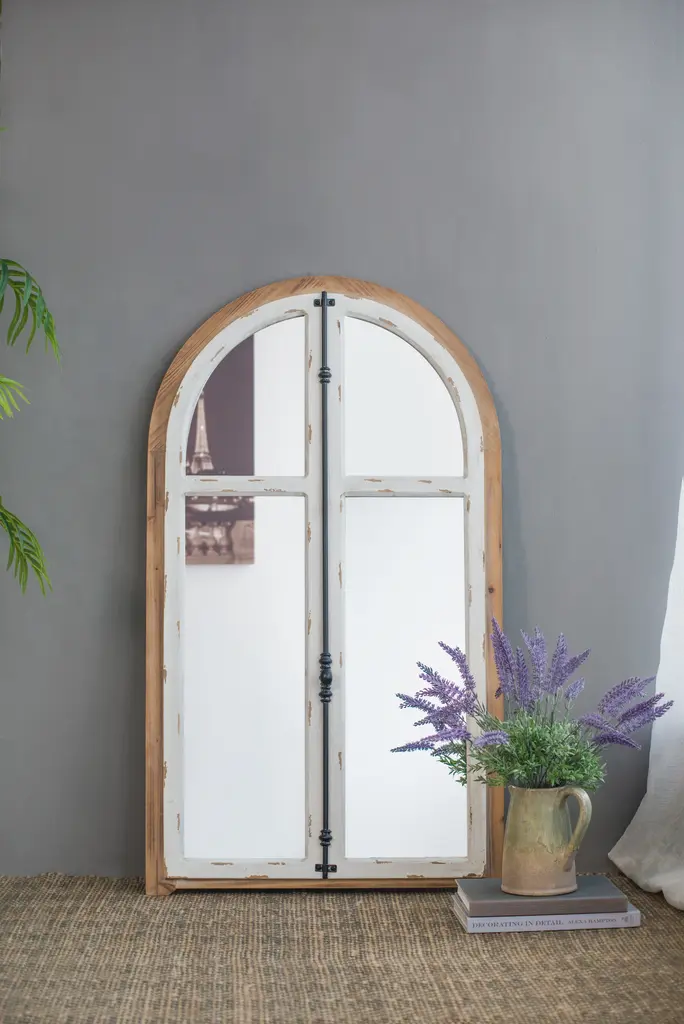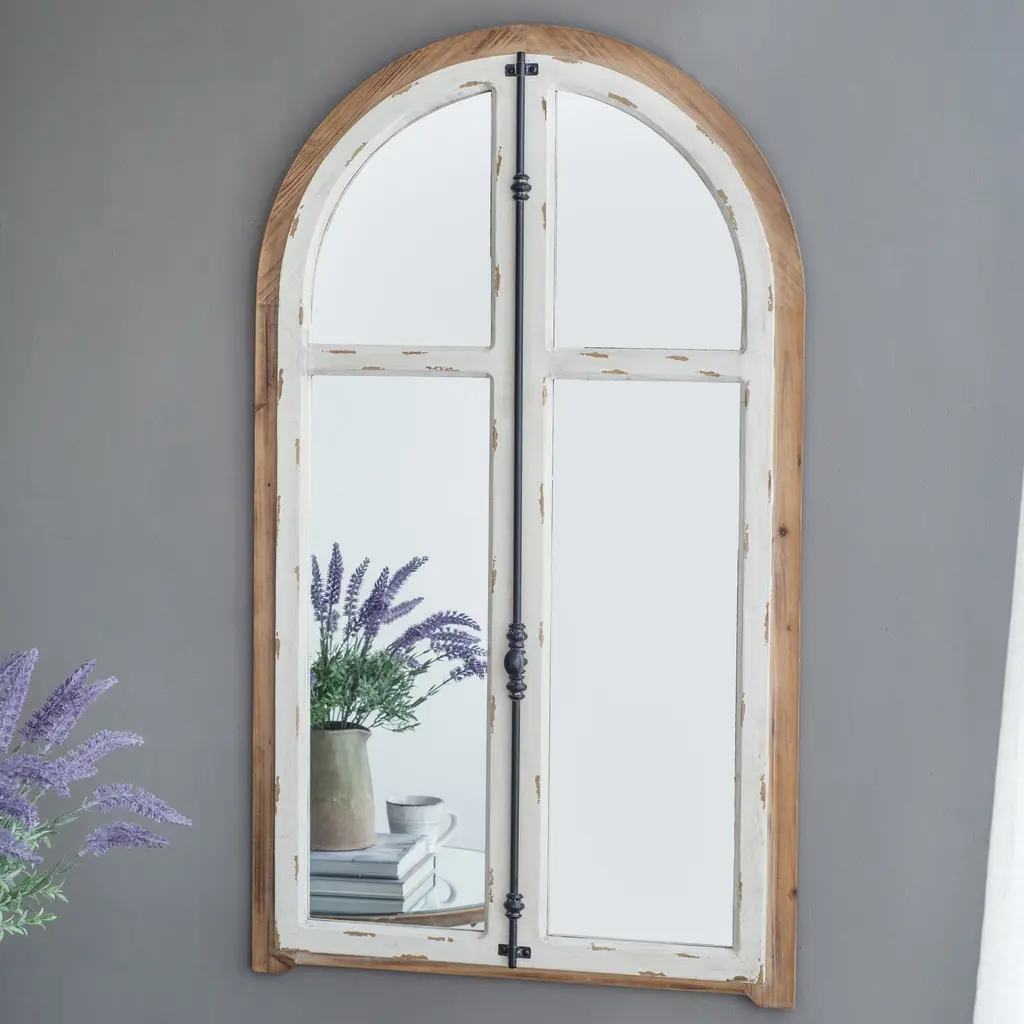 Bring timeless elegance to your home with this wall mirror, showcasing a beautifully arched window frame design that enhances any room. Crafted from Fir wood, MDF, and glass, it offers both durability and visual appeal. The unique arch design creates an airy, spacious feel by reflecting light and adding depth. Perfect for various settings, this mirror seamlessly complements modern and traditional decor styles, elevating your space with effortless charm.
