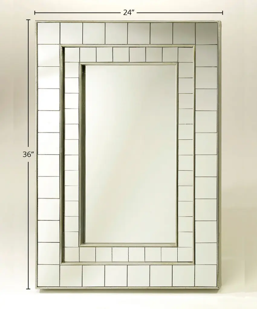 Introduce a touch of elegance to your home with the Wooden Accent Mirror. This mirror showcases a rectangular wooden frame with a sleek gray finish, offering a modern aesthetic. The premium glass ensures a flawless reflection, enhancing your daily routines. Designed for easy installation, this mirror seamlessly blends with contemporary and minimalist decors. The design boasts subtle elegance and you can place them in various areas of your home.Features:Overall product dimensions are 24" W x 2" D x 36" HRectangle mirror you can place anywhere in your houseDurable wooden frame with distressed gray finishGenerous 28-inch diameter enhances wall spaceHigh-quality glass provides clear reflectionsDimensions:MirrorAssembled Product: 24 inches wide x 2 inches deep x 36 inches high.