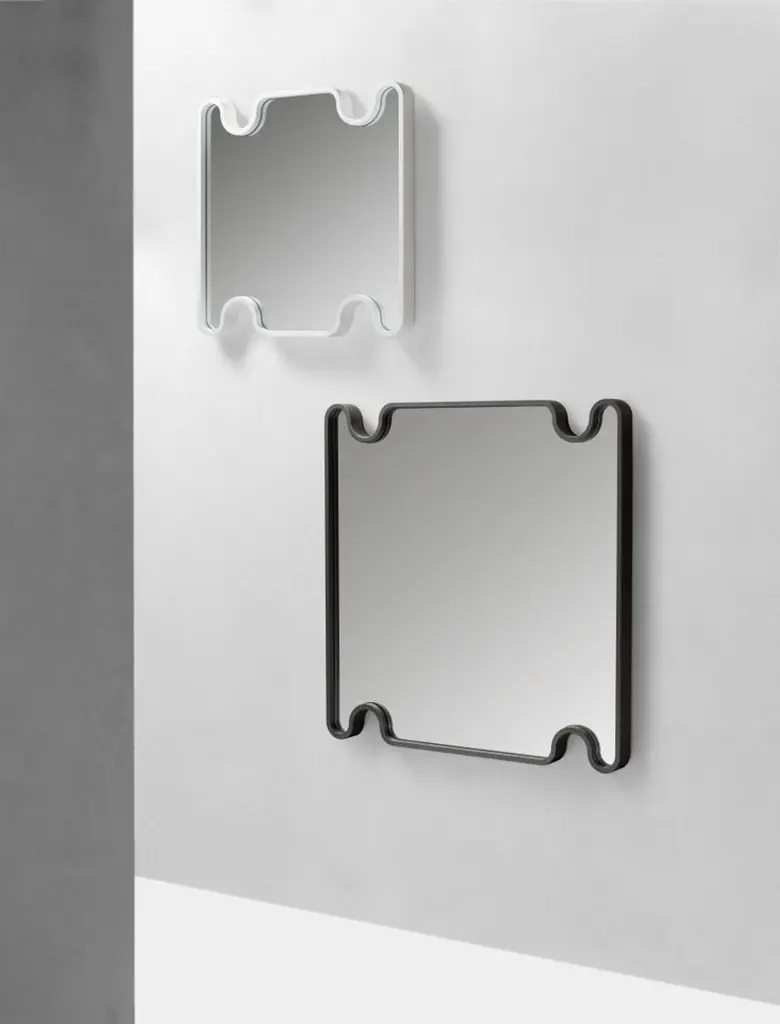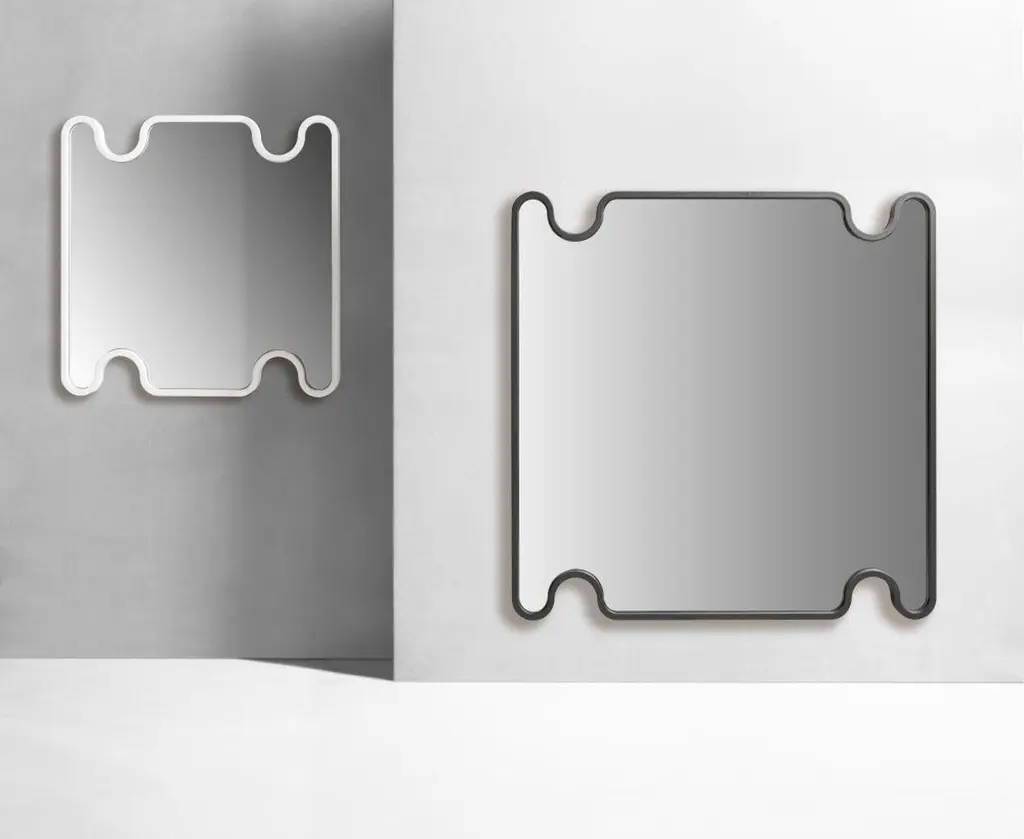 Ossicle Wall Mirror Square (Medium) -- Francesco Balzano x GiobagnaraAvailable only with lacquered wood frame. Pictured here are the medium (lower right) and small (top left) ossicle wall mirrors. For simple and sophisticated leather and marble products, look no further than the Francesco Balzano line. Born and raised in Paris, Francesco Balzano studied interior design and architecture before opening his own studio to design custom and limited editions of furniture pieces for galleries around the world. The influence of Venice, Rome, and Capri are omnipresent in many of Balzano’s products, which fashion simple elegance out of a carefully selected range of leather and marble colors and finishes. The monolithic seats, benches, and tables that comprise Balzano’s ossicle collection strike the perfect balance between organic and pure geometric shapes, thus offering contemporary luxury elevated by minimalism. The singularity of each design conceived as a sculptural piece is bound to stand the test of time. For nearly twenty years, the Giobagnara brand has combined traditional know-how and leading-edge technology to produce elegance of the highest standard. With luxurious creations available in a unique and virtually limitless color palette of leathers and suede, Giobagnara now boasts one of the most comprehensive offers of leather home accessories on the market.