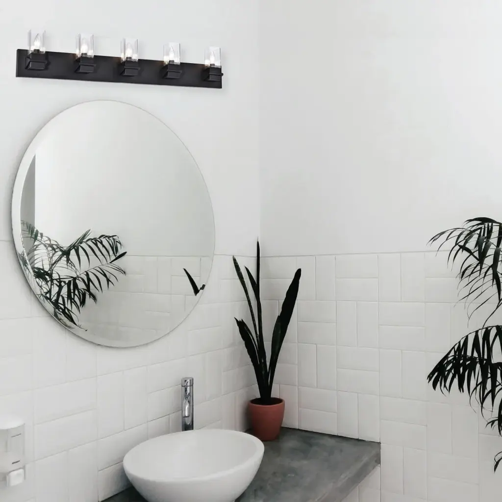 The unconventional lines of the Woodford framed mirror take design to a whole new level. This contemporary frame, with its wide, angular surface, is sure to be a star in any space.Hangrail for installation will be applied on the width of the frame. All assembly hardware and instructions will be included. Additional hangrails are included if the opposite orientation is desired for installation. The dimensions displayed are the final outside dimensions of the frame, including the mirror. CATII safety backing applied on all mirrors. Approved for high-moisture areas such as bathrooms.