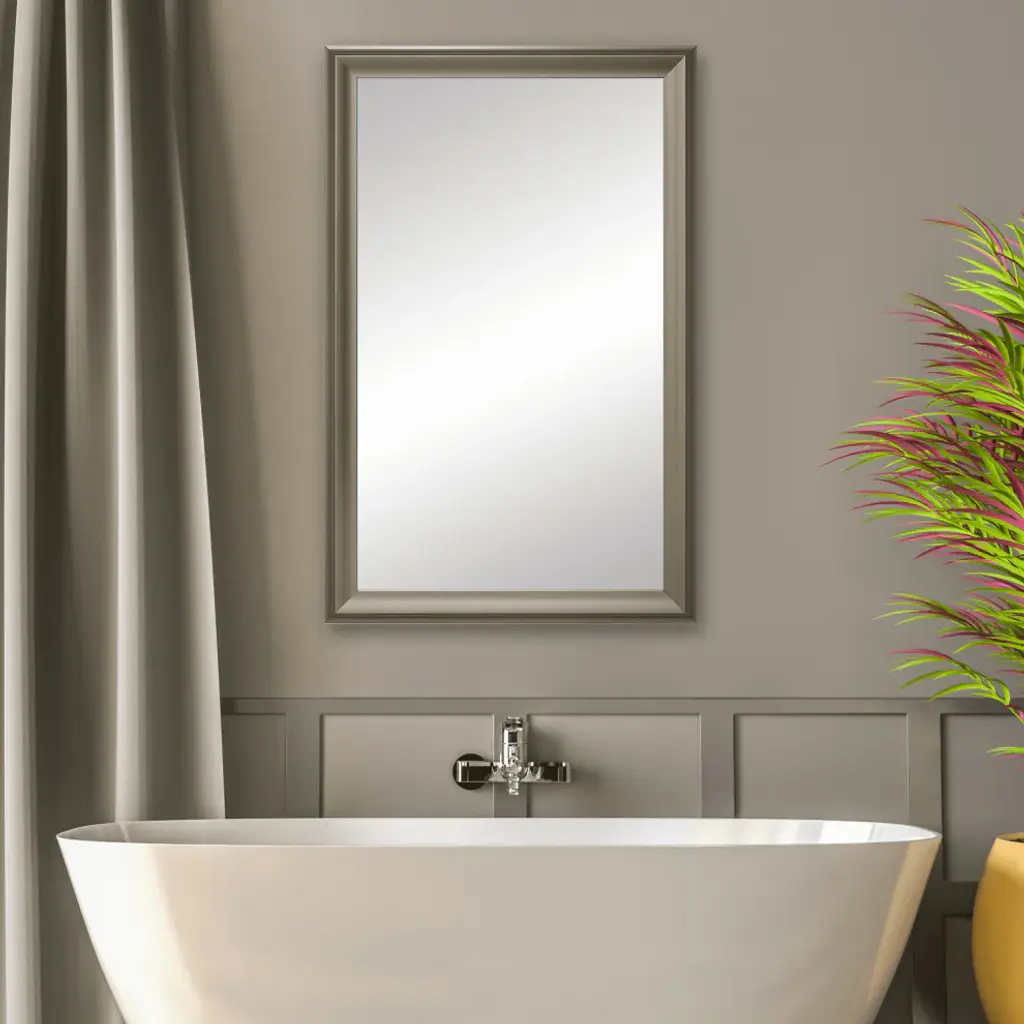 Woodford Framed Wall Mirror, Nickel, 28" X 36"