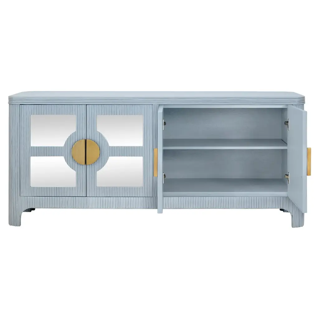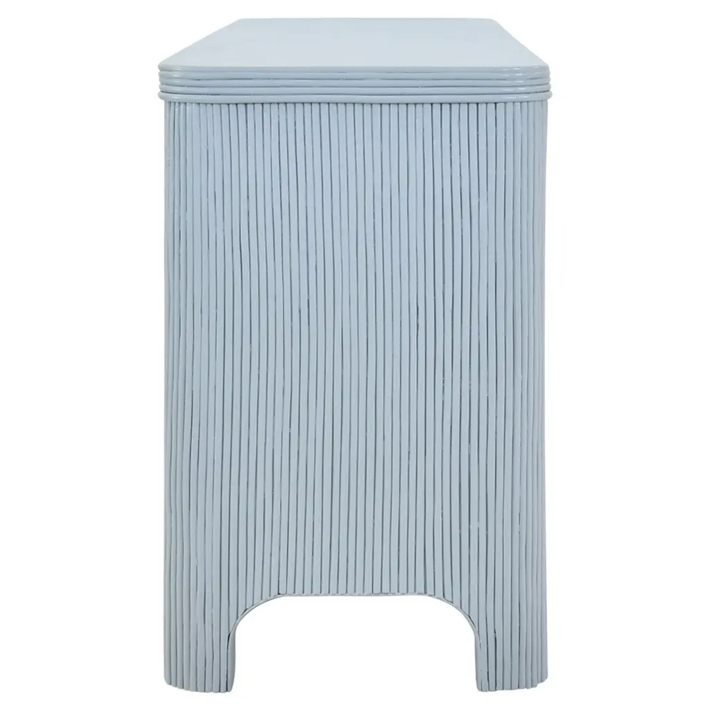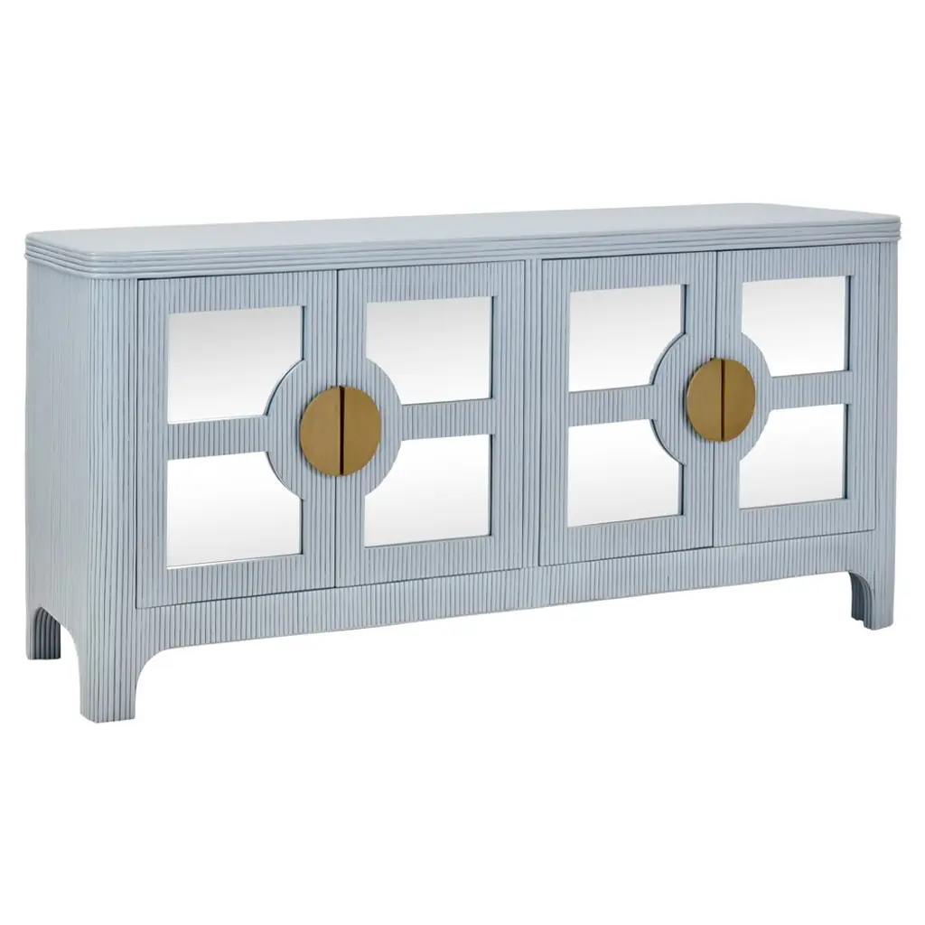 Worlds Away Opal Coastal Beach Light Blue Rattan Mirror Front Sideboard