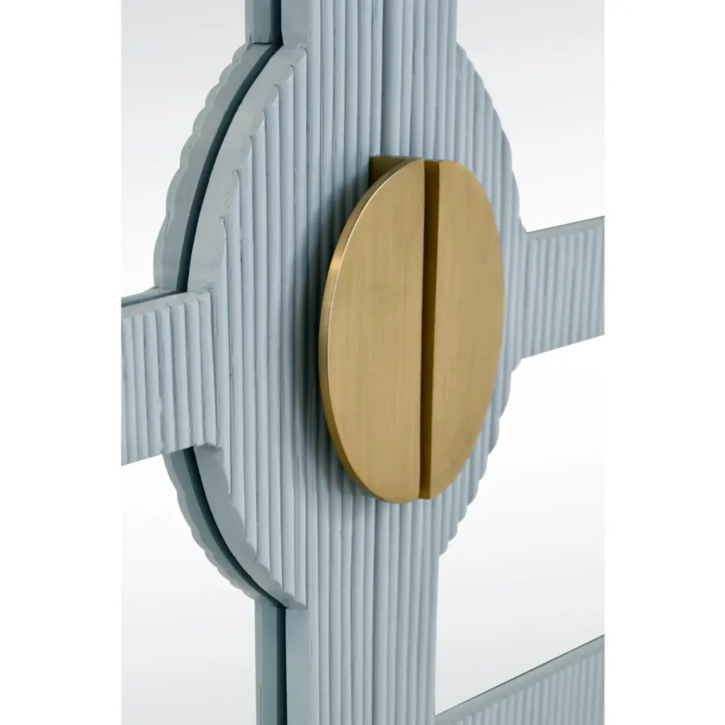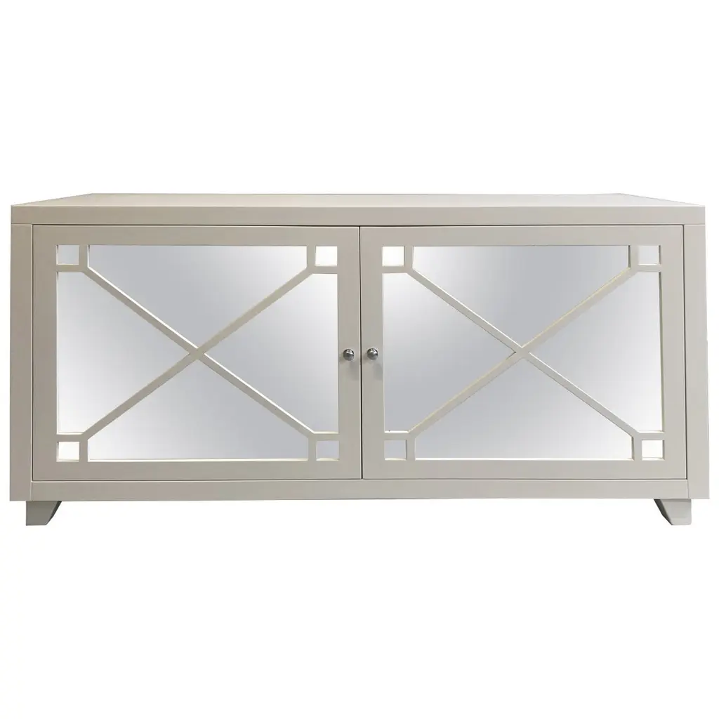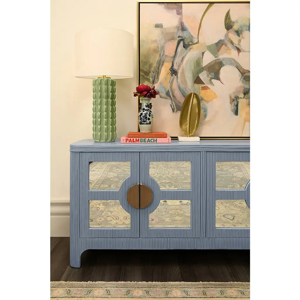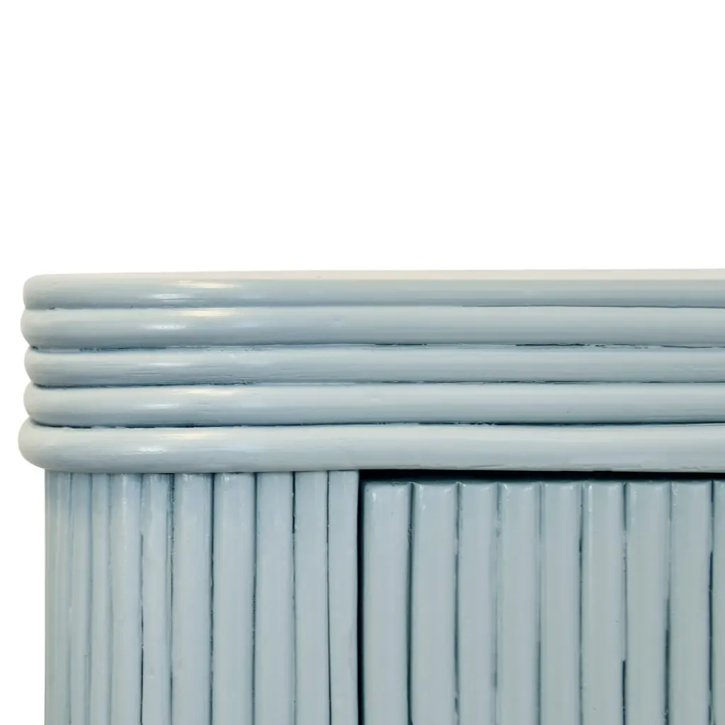 Worlds Away Opal Coastal Beach Light Blue Rattan Mirror Front Sideboard