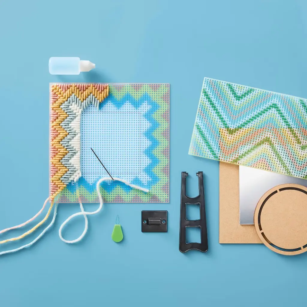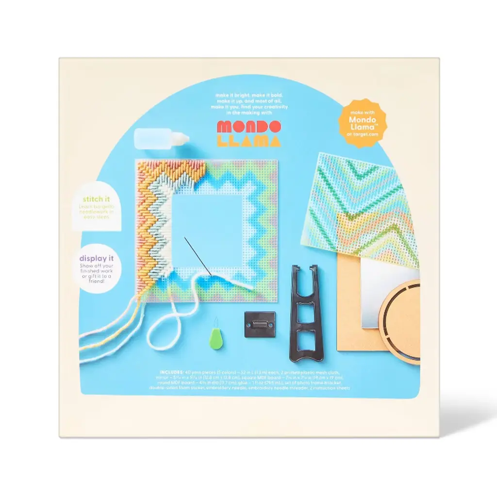 Make weekends fun for the kids using this Woven Yarn Mirror and Holder Craft Kit from Mondo Llama™. This woven craft kit includes a rectangular and square-shaped mesh cloth, colorful yarns, an embroidery needle and threader, and an instruction sheet. Follow the instructions from the sheet to weave printed clothes in a pattern, attach the mirror and photo frame bracket, and show off your needlework. You can use the finished artwork as home decor or gift it to a loved one.Mondo Llama™: Find your creativity in the making.