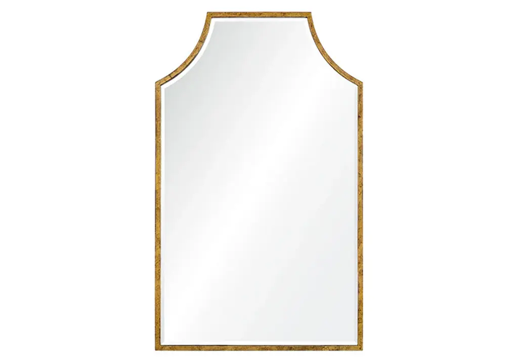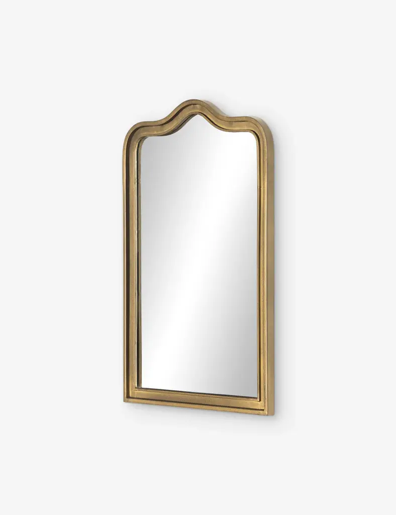 With a raw antique brass finish, this framed mirror is perfect for layering character into your space. The mirror's shaped silhouette can bring a subtle architectural note into your decor for a timeless feel.