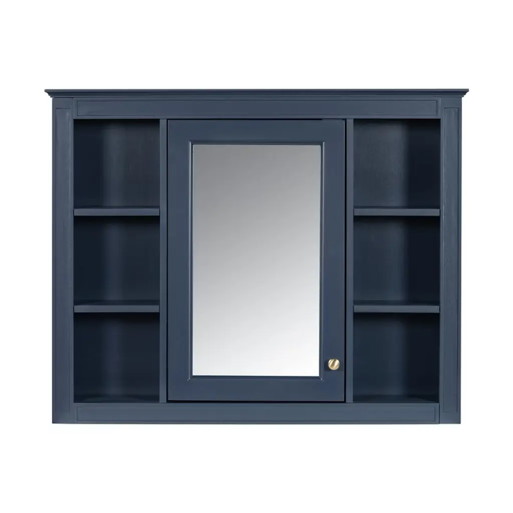 Xinghanzhenxuan Blue Wall Mounted Bathroom Storage Cabinet With Mirror, Modern Medicine Cabinet With 6 Open Shelves