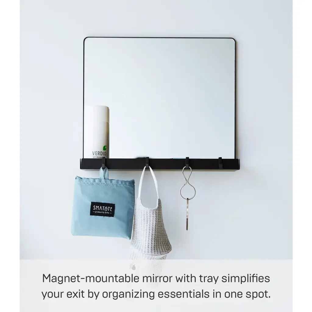 Yamazaki Home Magnetic Mirror With Storage Rack, Glass, Holds 5.5 Lbs