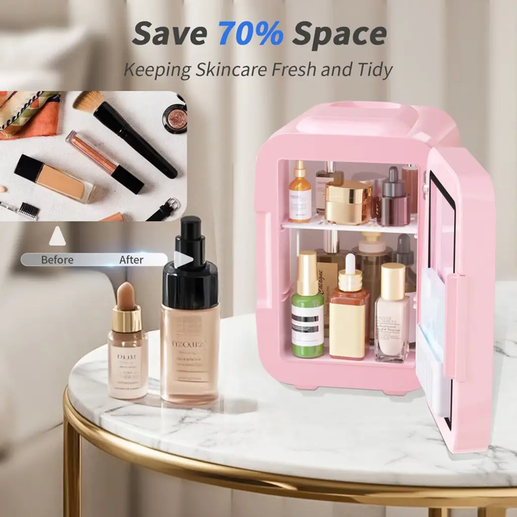 Equipped with a touch screen led light high-definition mirror glass door, which include low light for daily skincare, medium light for full face makeup and high light for detail makeup. This fridge provides three brightness levels for flawless makeup application and skincare routines, even in dim lighting fridge dimensions of 7.87*5.31*5.11in. Yashe skin care fridge fridge provides plenty of space to store your favorite skincare products, including serums, moisturizers, masks, and more. A thoughtful gift idea to show love and care for friends and family switch between hot and cold modes. The cooling temperature is 35.6?(ambient temperature is 64.4-68?) and the heating temperature is 149°f. Stored your lunch, drinks and baby bottles or extend the shelf life of skin care products, facial masks small fridge include a household power cord (ac-120v) and a car power cord(dc-12v). It is ideal for bedroom, office, vanity, dorm, kids room, lady lounge, countertop, car, rv or on a trip this makeup fridge keeps sound at a minimum ( 25db ) which make your use more comfortable, will not interfere with your work and rest. It needs sufficient heat dissipation space; it should be placed in a location with at least 2 inches of clearance on all sides. Don't directly put hot food inside of the beauty fridge.