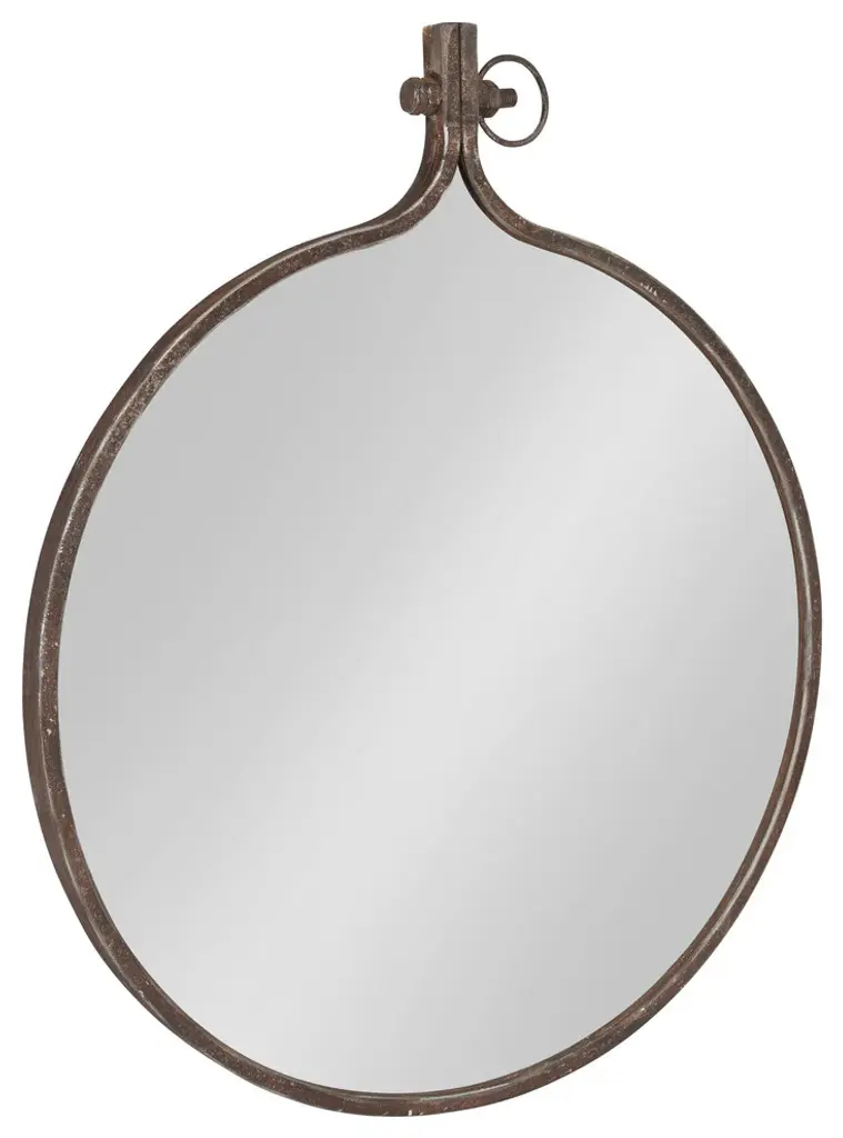 Decorating with mirrors increases the potential of your decorative aesthetic in your home, especially when they come in a bold and versatile shape like the Yitro round wall mirror. This round accent piece is crafted for the industrial decorator, with an iron frame and an ornamental crown for a robust look and quality. The painted bronze finish of the metal frame and the modern design couldn''t be more accessible for any decorator, bringing added vibrancy and dimension to any room. Not only can it be used as a much-needed accessory, but with a bit of imagination, it can become a real focal point of your home decor scheme. The glass mirror is enhanced by the vintage charm of the frame surrounding it and creates a gorgeous look that will upgrade any living room, bathroom, entryway, or bedroom decor. The outside dimensions are 23.5inches by 28.5 inches to fit on any wall, while the inner mirror is 22.5 -inches in diameter to highlight the depth of your space. A keyhole hanging bracket comes attached to the back for easy installation.• Unique Round Mirror Design: The modern shape and the smooth metal frame surround the reflective surface, giving off plenty of light and creating depth in the space• Premium Quality Material: The Yitro wall mirror comprises a durable rustic metal frame and has an ornate metal crown paying homage to its industrial decor style• Sizable Wall Mirrors for Living Room: The rustic metal frame surrounds the large round mirror which is 23.5 inches in diameter. It would be perfect as a vanity mirror in a bathroom or bedroom• Vintage Mirror for Wall Decor: This antique-inspired industrial wall mirror is fantastic whether serving as a mantel accent, bedroom decor, or a bathroom mirror above your powder room vanity• Easy to Hang: The robust material of this rustic wall mirror hangs in sturdy fashion thanks to the metal keyhole hanger securely attached to the back of the frame