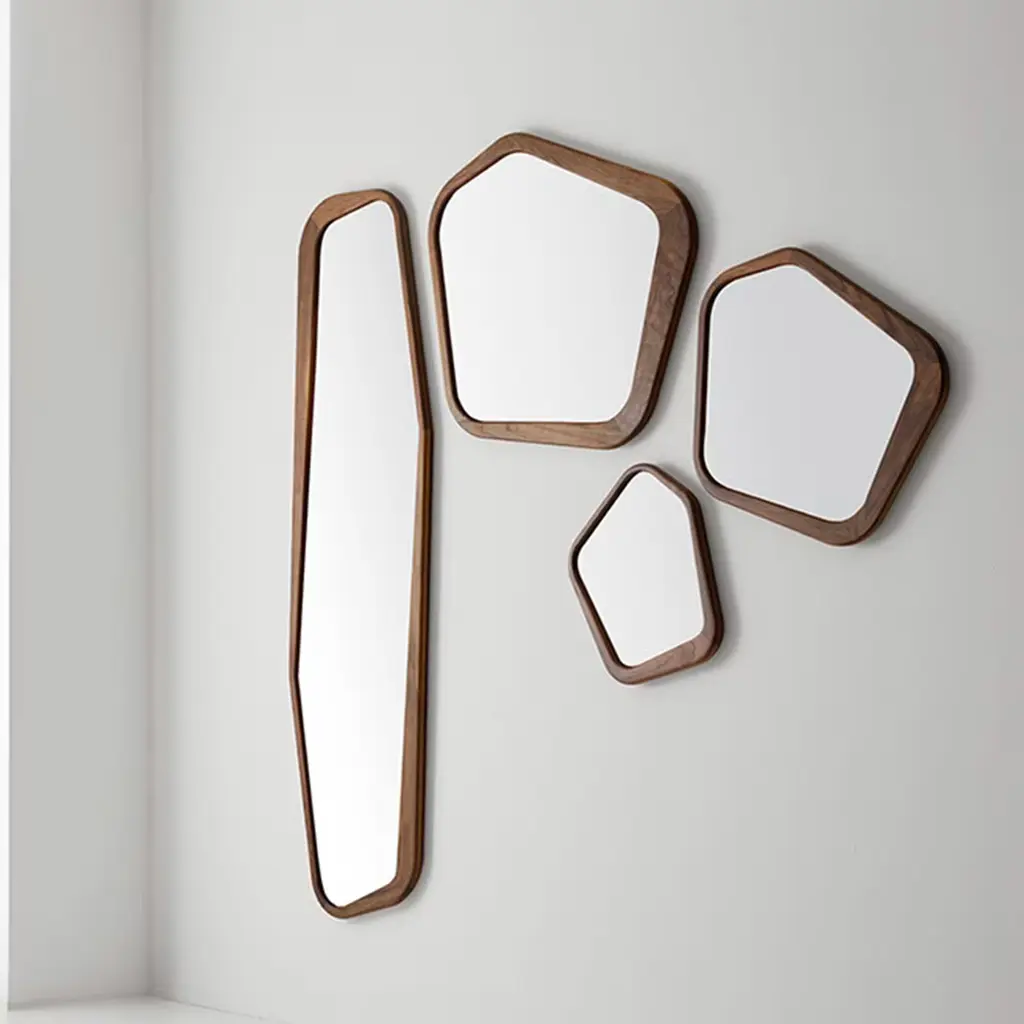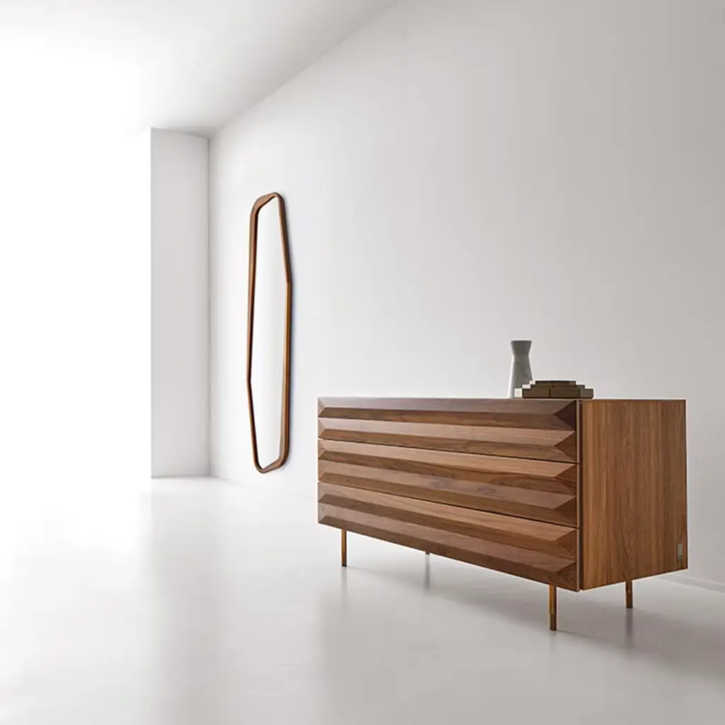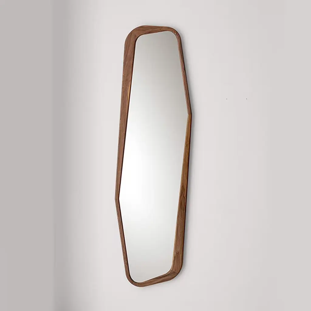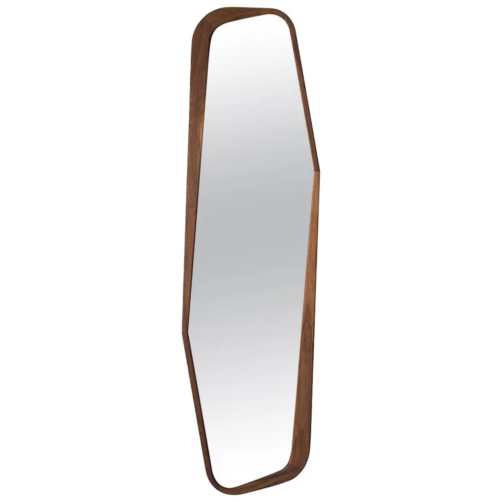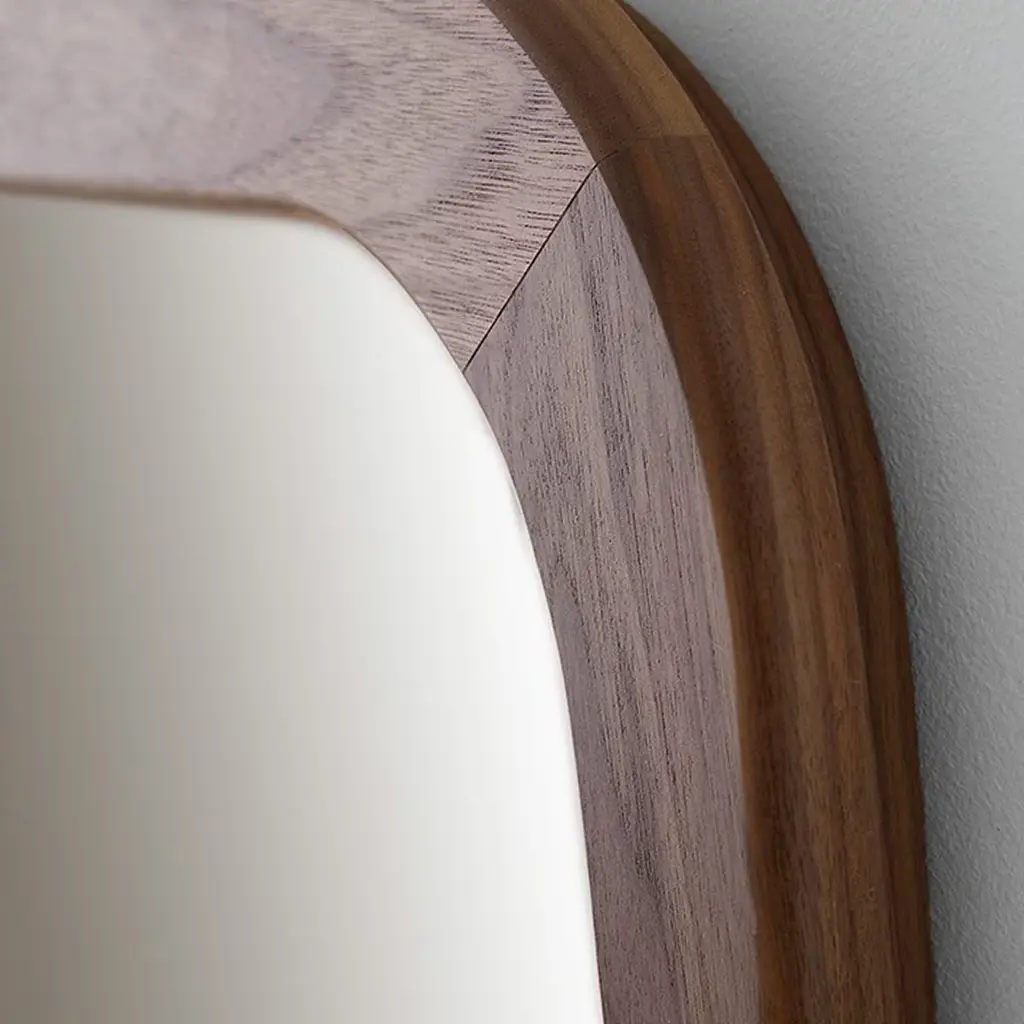Mirror completely in solid Canaletto walnut. Very versatile and characterized by a contemporary design, it can be placed in any space of the house: entrance, living room, or bedroom. A natural water-based varnish finishes the mirror.