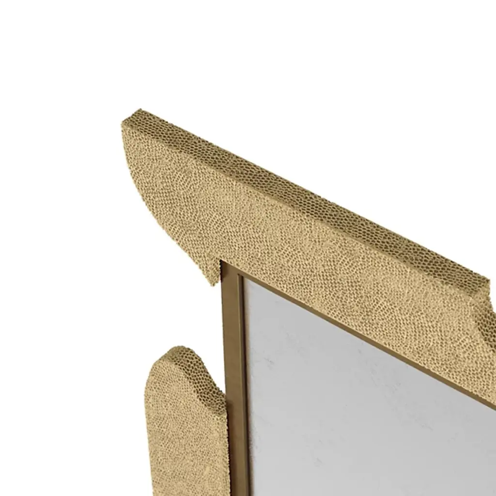 The Zayden Mirror from Arteriors is meticulously crafted from fine iron. Your mirror exudes luxuriousness and durability. Zayden is defined by its puzzle-piece-like frame, adding a touch of fine artistry to the design. Its versatile form allows it to be hung either vertically or horizontally, offering convenience so that you can take in your reflection with clarity.