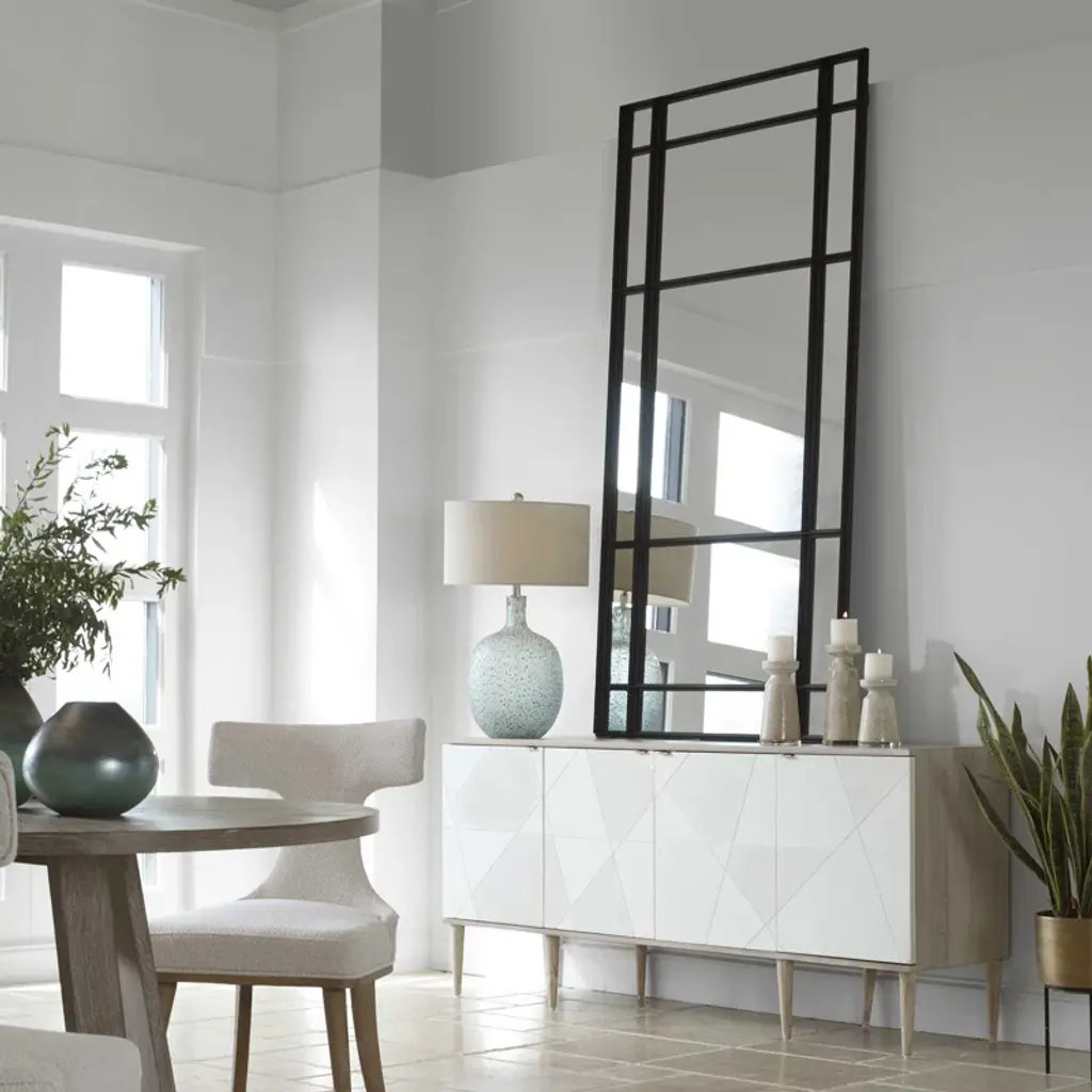 This accent mirror features a heavy iron frame with deep channels inspired by old warehouse windows for a trendy, unexpected look we can't stop talking about. It's made from wrought iron finished in a classic black that goes with everything. We love the versatility of this mirror: it can be leaned or mounted, and can also be oriented either horizontally or vertically. Plus, it makes your space appear larger by letting light bounce around, which is one of the many reasons it's our pick for an everyday essential.