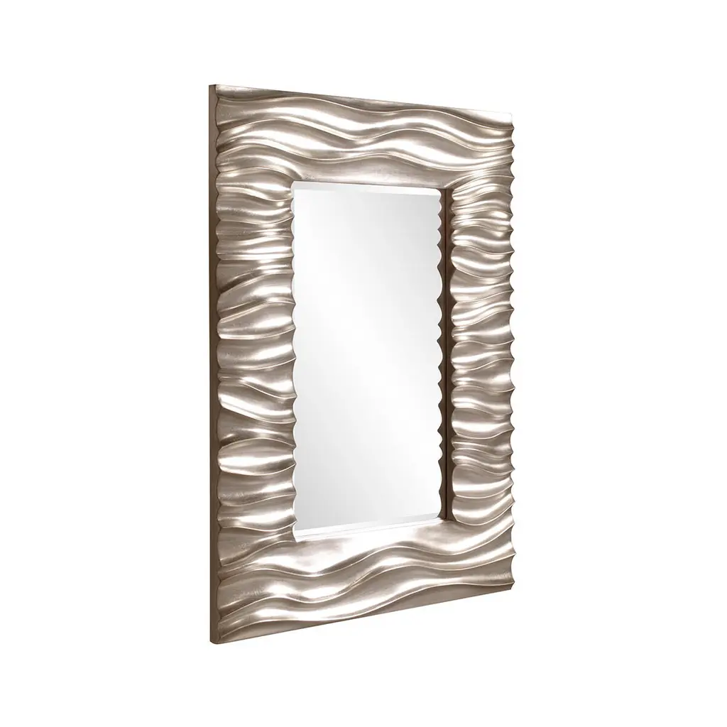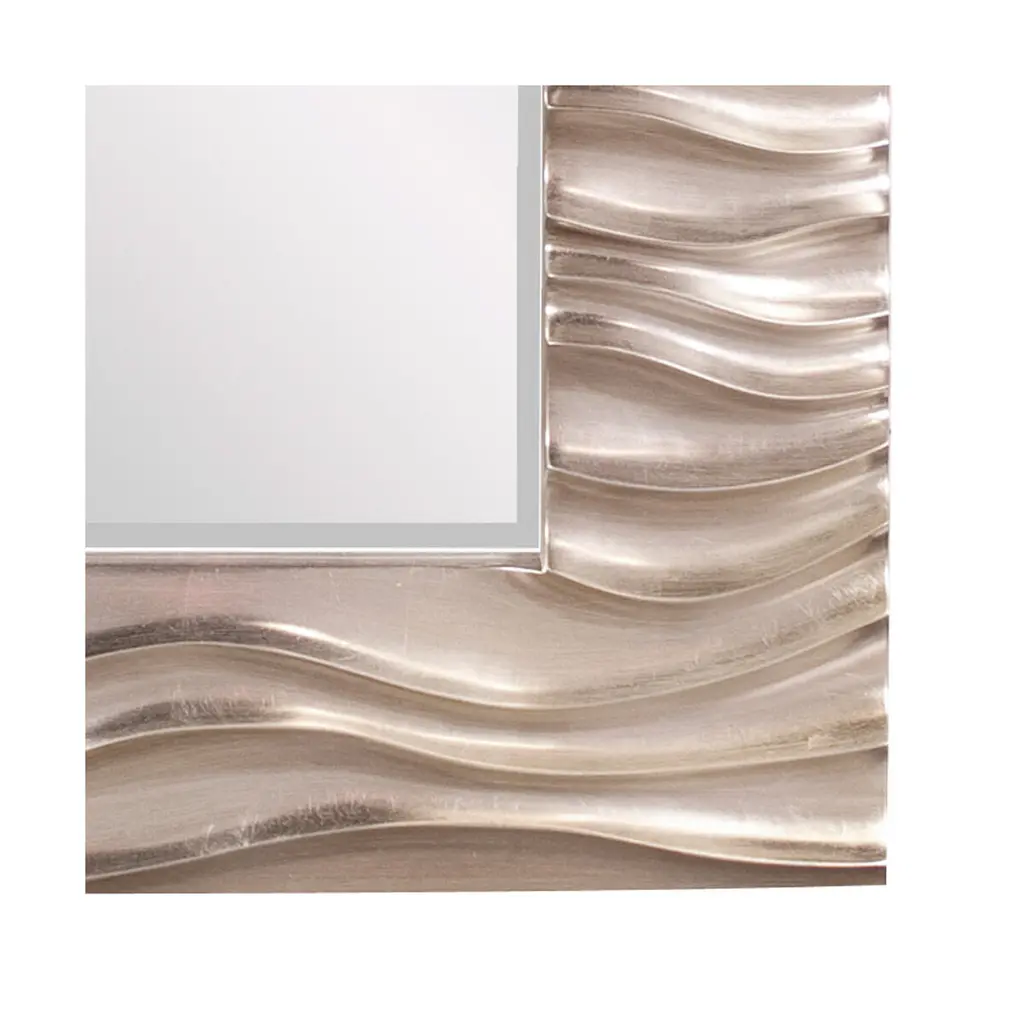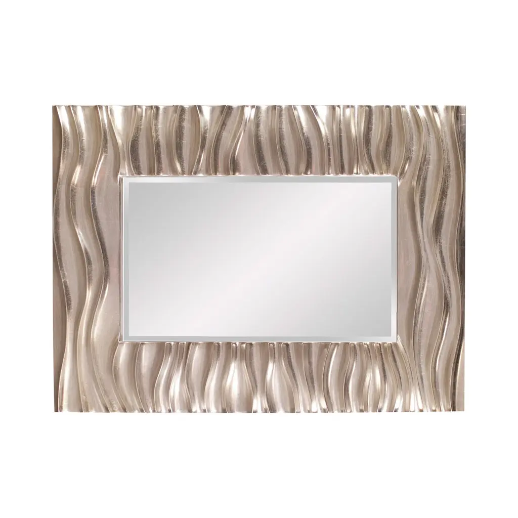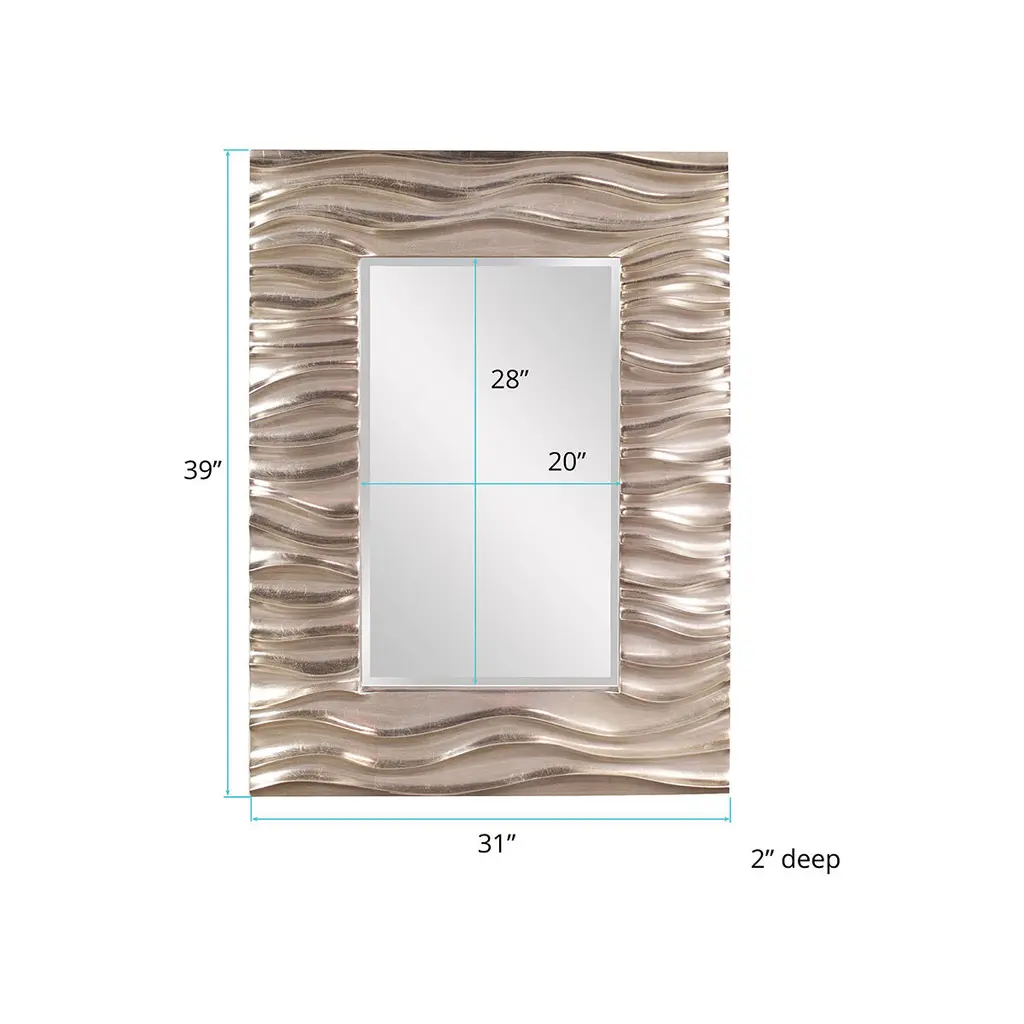 Our Zenith Mirror features a rectangular frame that is characterized by a deep textured wave design. The waves give an interesting movement to the piece. It is then finished in a bright silver leaf finish. The mirror is beveled adding to its style and beauty. It is a perfect focal point for an entryway, bathroom, bedroom or any room in your home. D-rings are affixed to the back of the mirror so it is ready to hang right out of the box in either a vertical or horizontal orientation!