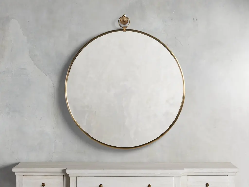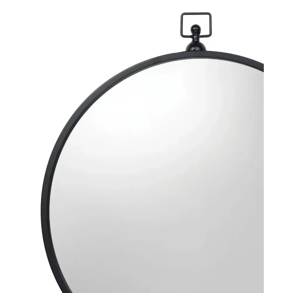 A modern take on an antique-inspired silhouette, this mirror will bring charm to a variety of décor styles. Featuring glass surrounded by a slim metal frame hand-finished in black. Mounted above a vanity, sideboard or dresser, its round shape will soften any room while reflecting light to make your space feel bigger.