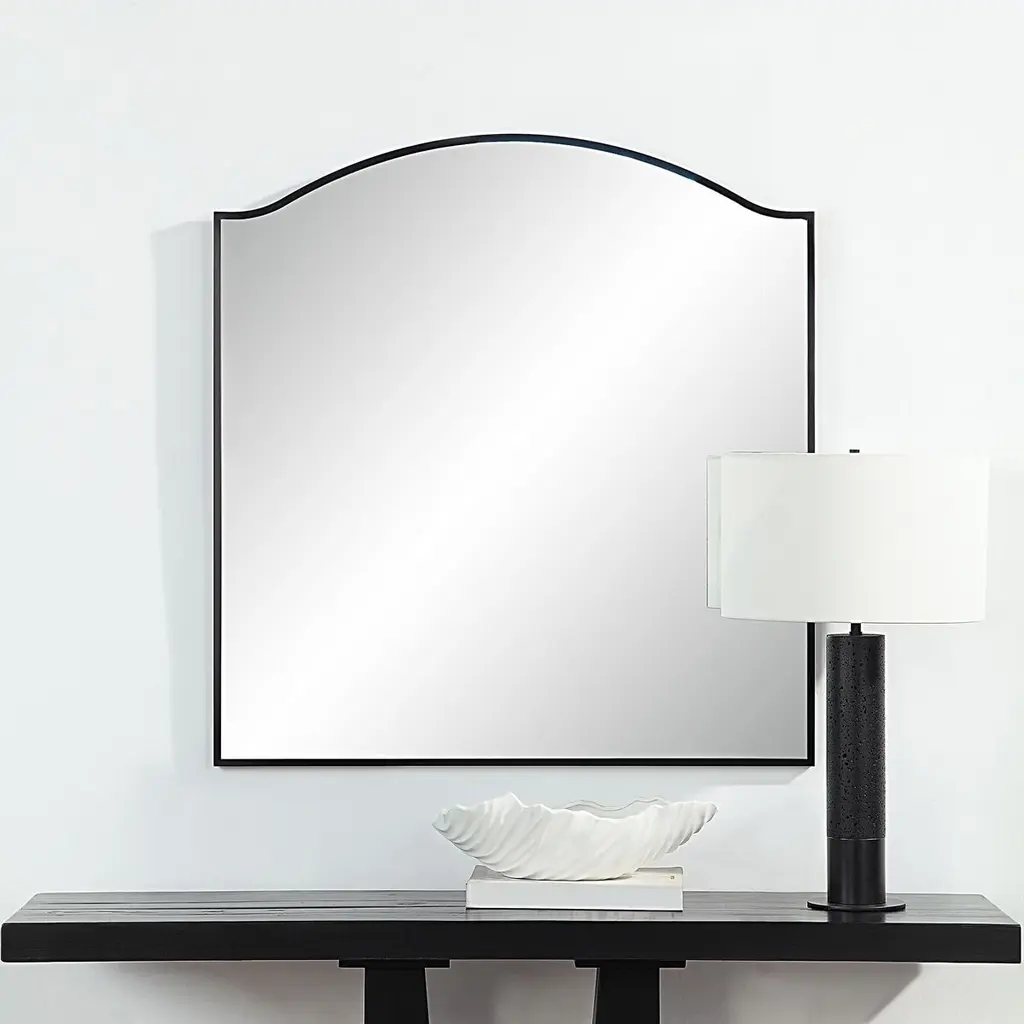 Zyra 40" Tall Arch Square Wall Mirror, Matte Black