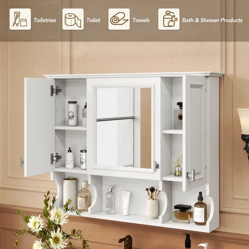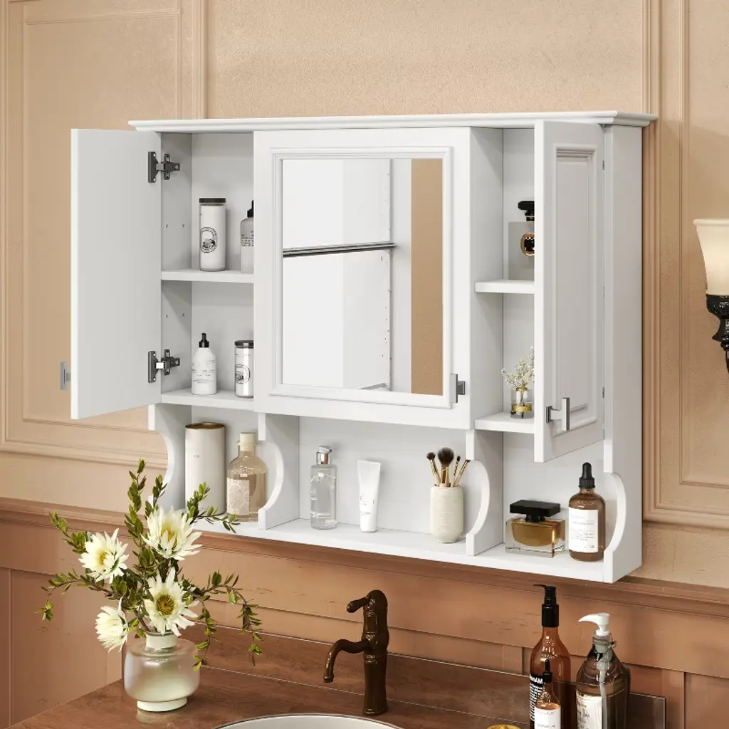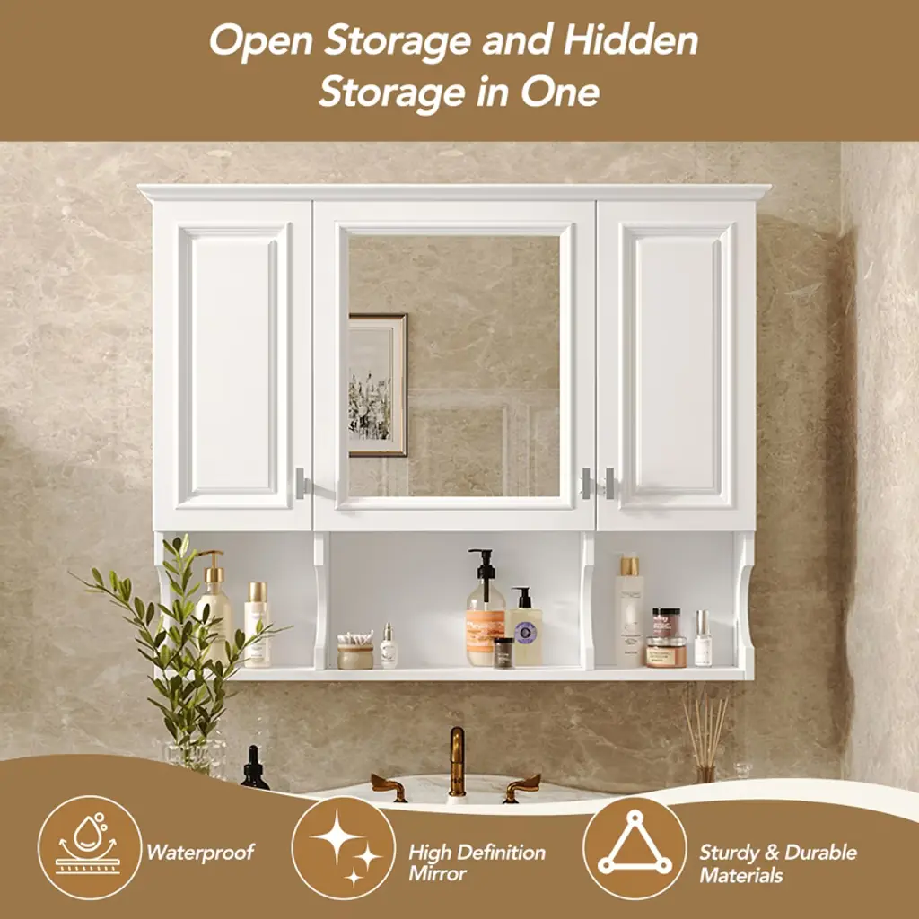 Chery Life 35'' X 28'' Modern Bathroom Wall Cabinet With Mirror, Open Shelves, White
