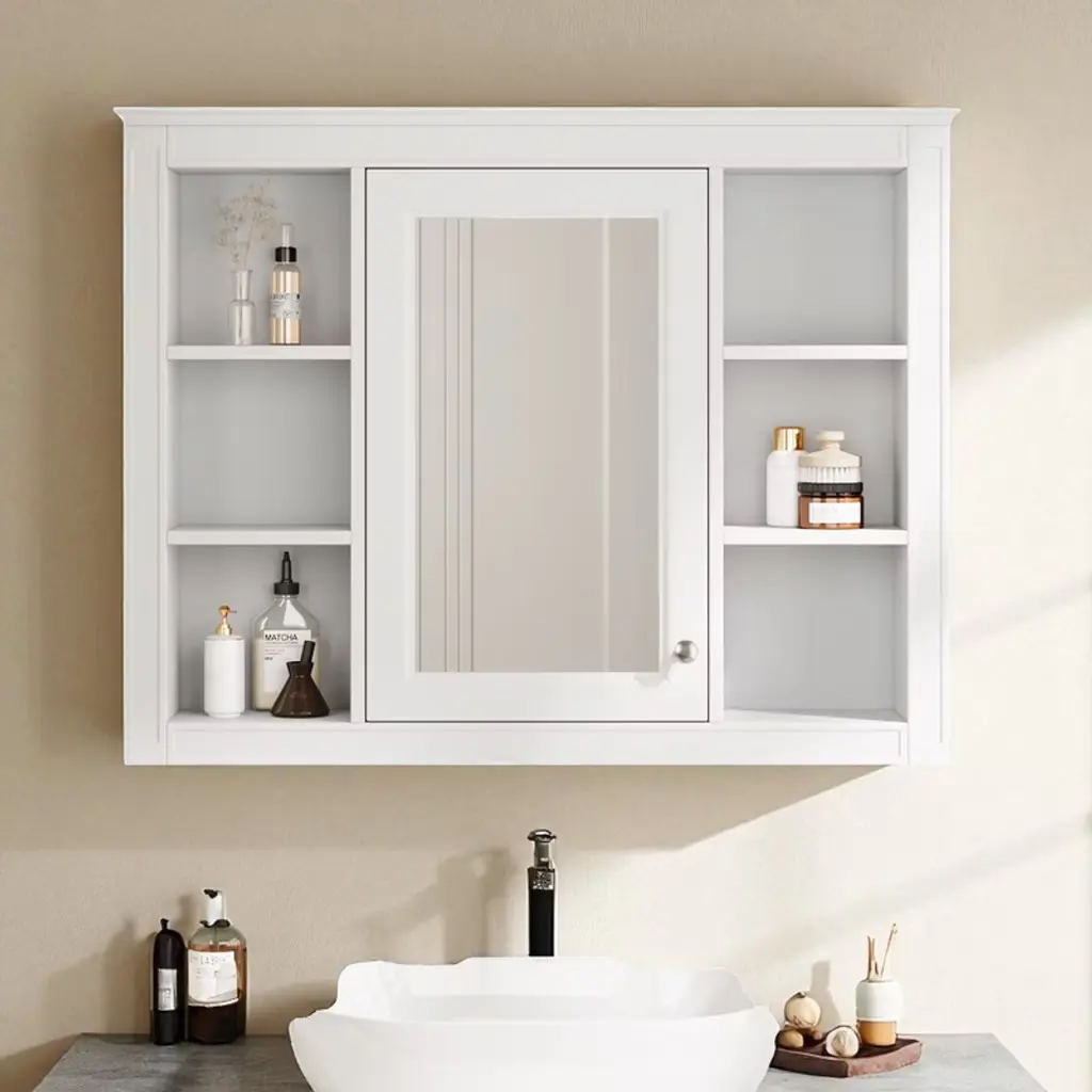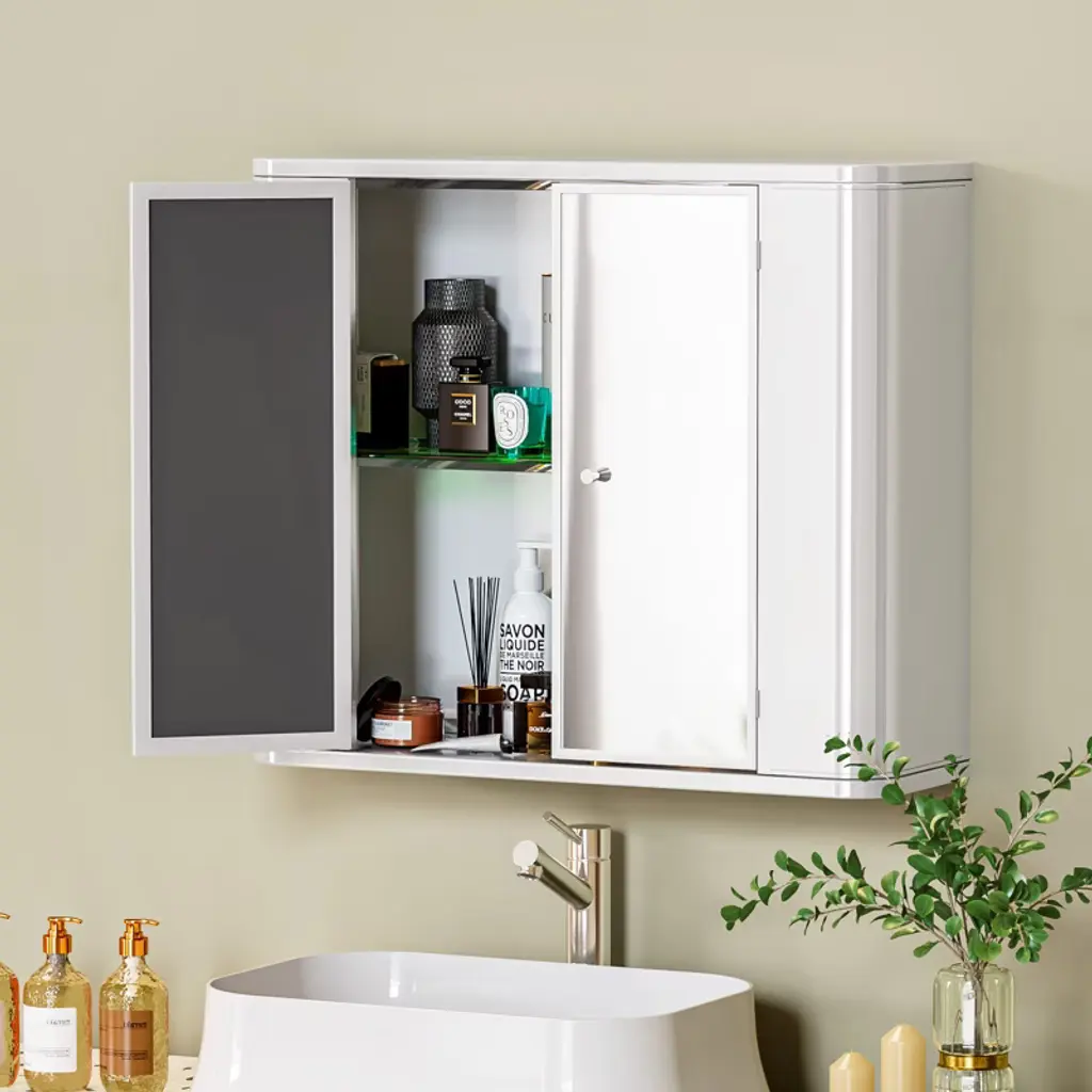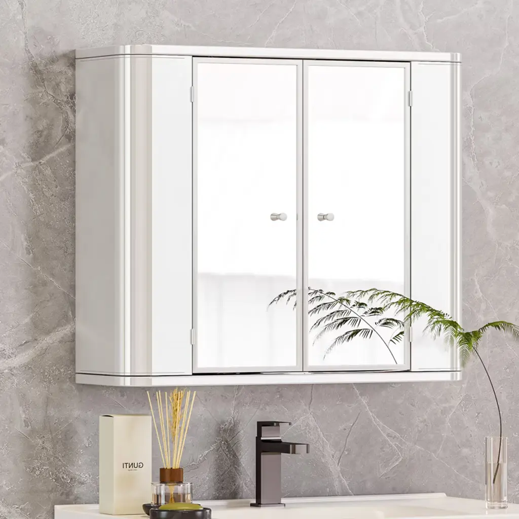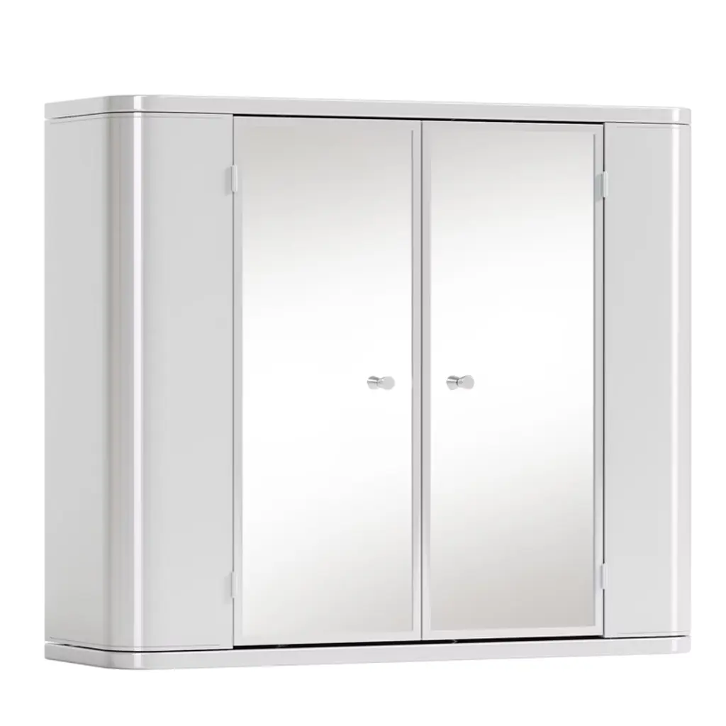 Csbdhome Double Door Mirrored Wall Cabinet With Rounded Edges – White – Modern Bathroom Storage