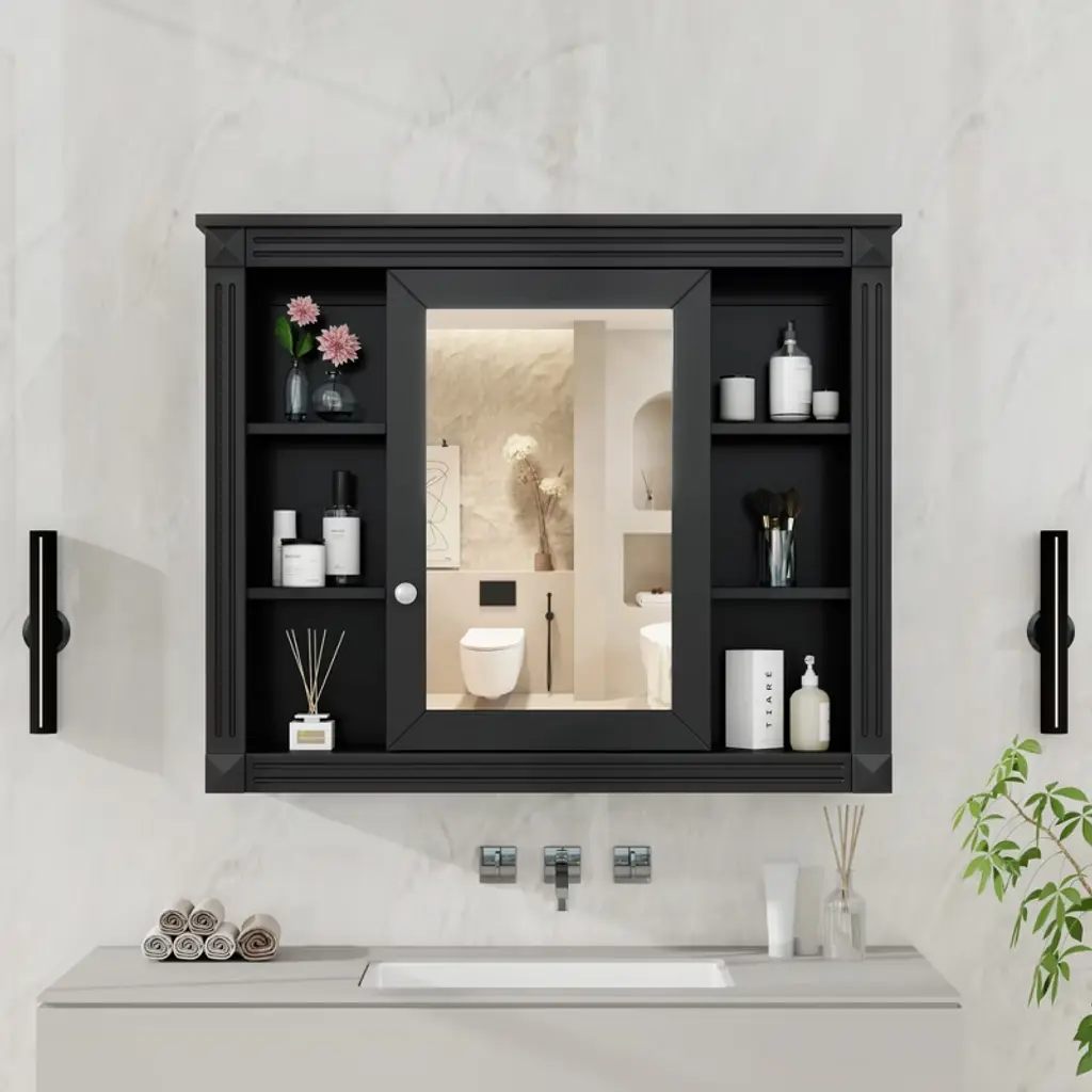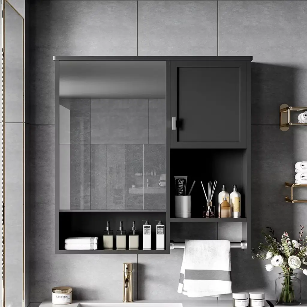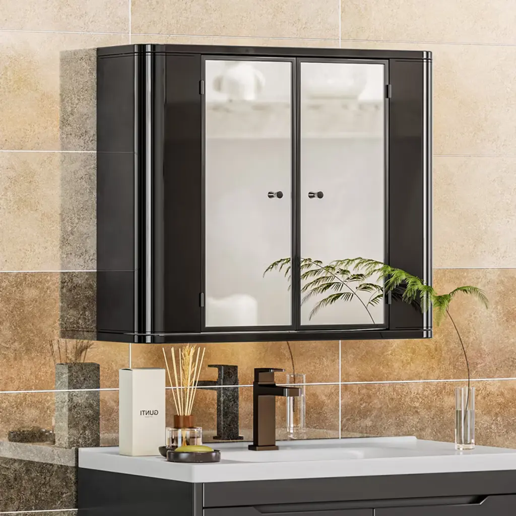This sleek double-door mirrored wall cabinet brings a touch of modern elegance to any bathroom or dressing area. Featuring a smooth, rounded-edge design and available in both glossy black and crisp white finishes, it seamlessly blends with a variety of interior styles. The full-length mirrored doors not only offer clear reflections for daily grooming but also enhance the sense of space and brightness in the room. Crafted with durable materials, this cabinet provides practical storage behind its mirrors ideal for keeping toiletries, cosmetics, and other essentials neatly organized. Perfect for compact spaces, it mounts easily to the wall, combining functionality with contemporary style.