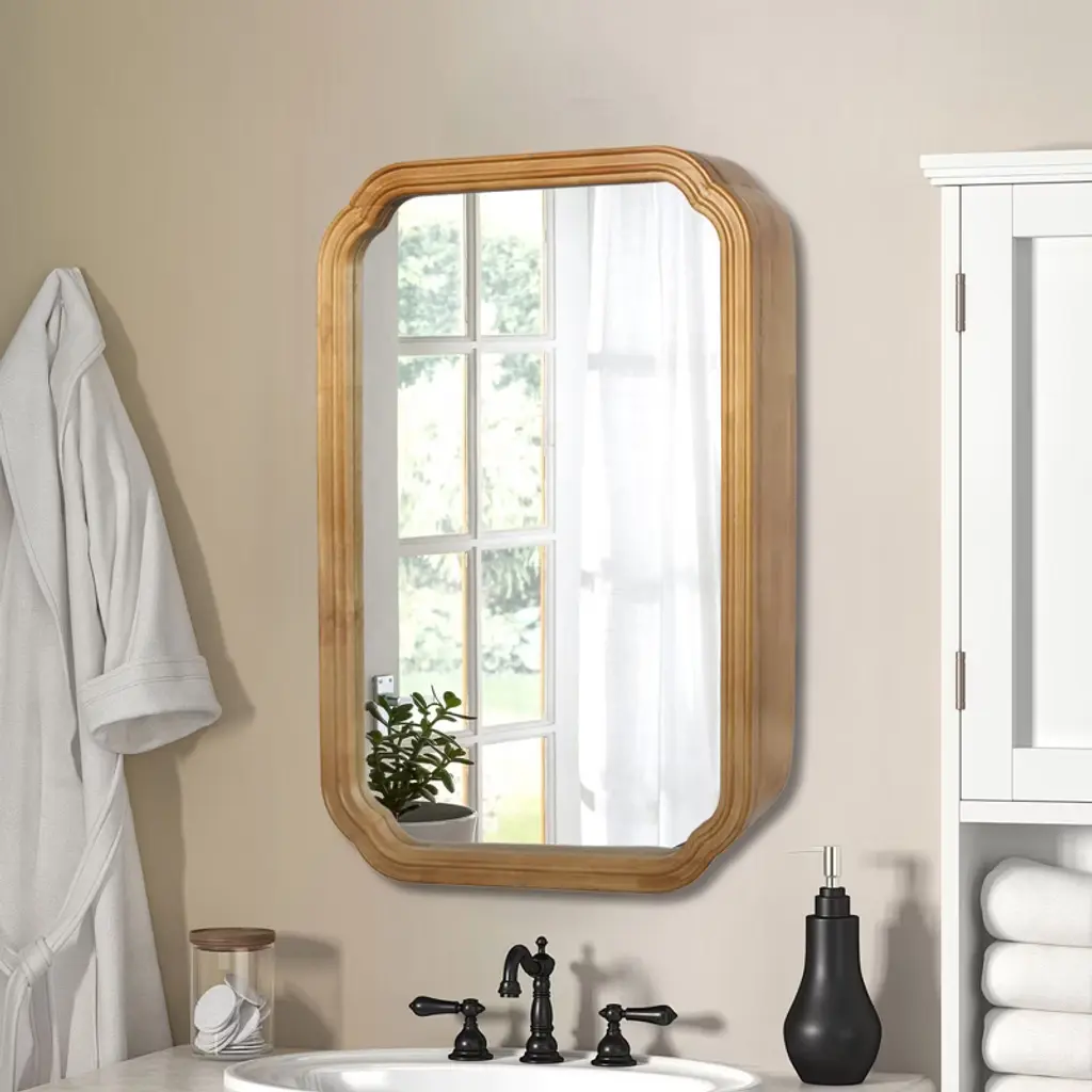 This uniquely shaped mirror is a striking decorative piece that adds a touch of sophistication to any room with its captivating floating illusion design. It cleverly hides the organizer cabinet behind the mirror